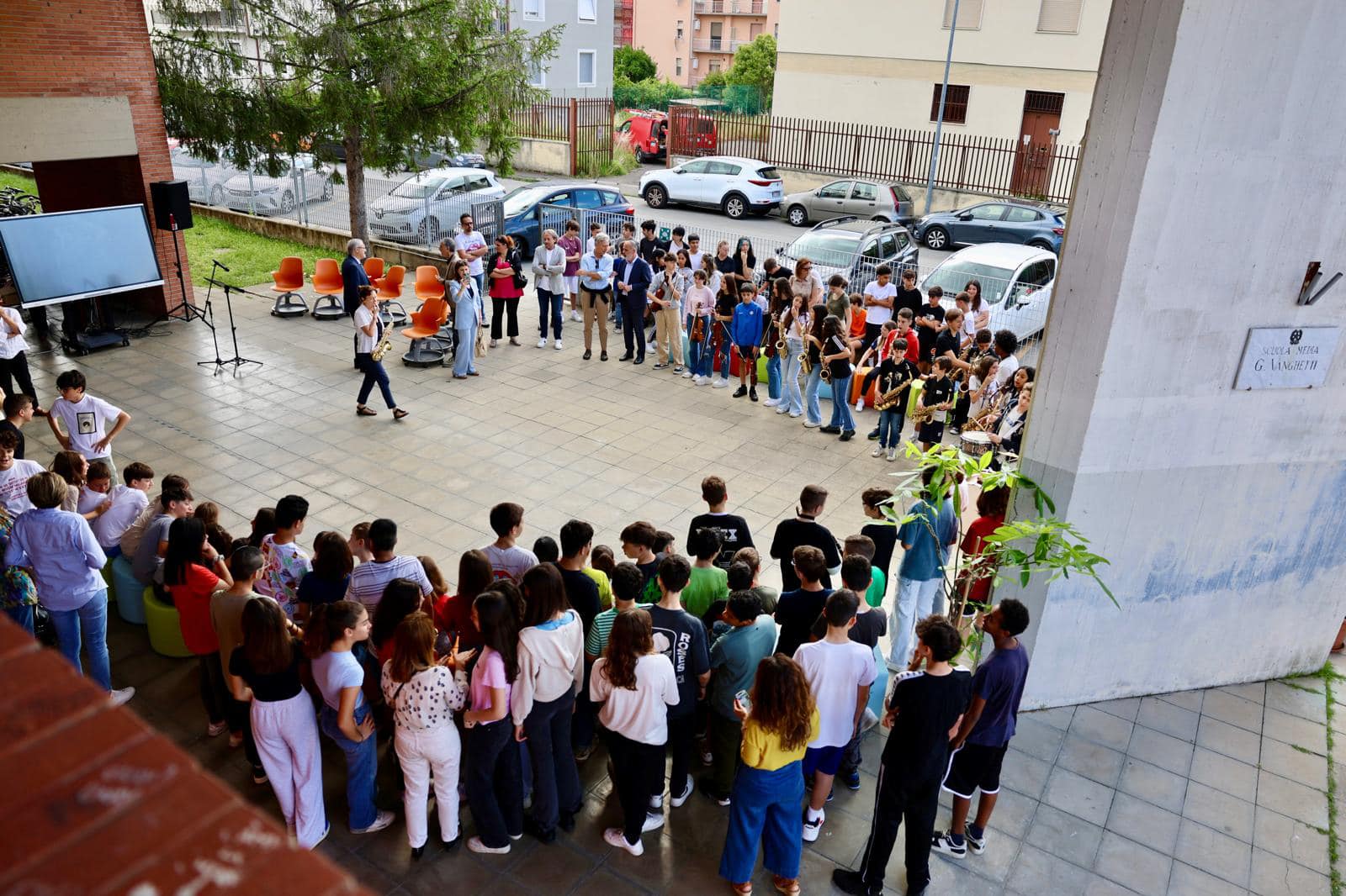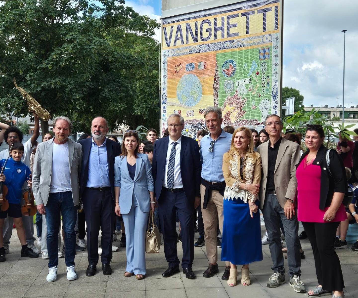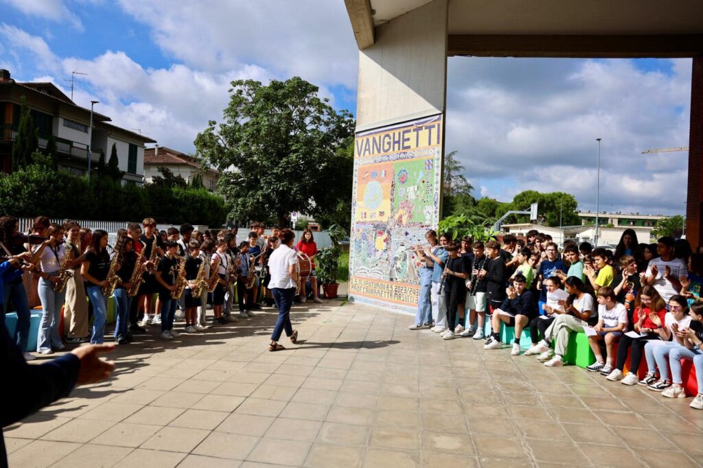 L'inaugurazione, accompagnata dalla performance musicale dei ragazzi della Vanghetti Street Band, ha visto la partecipazione dei rappresentanti delle aziende Berni e Bitossi che hanno fornito i materiali per il mosaico, dell'assessore Adolfo Bellucci e della sindaca Brenda Barnini, che ha dedicato agli studenti parole di gratificazione ed incoraggiamento.