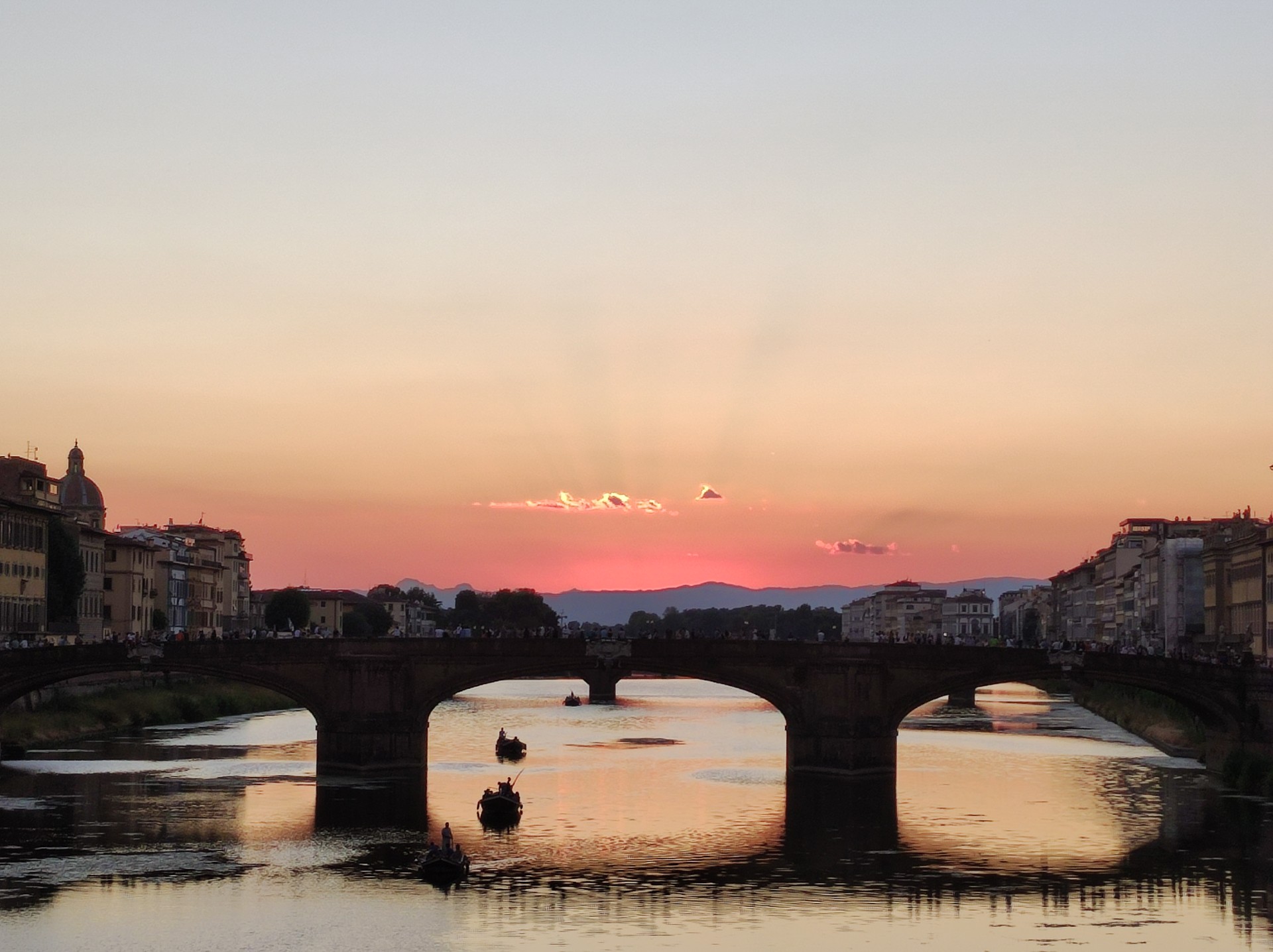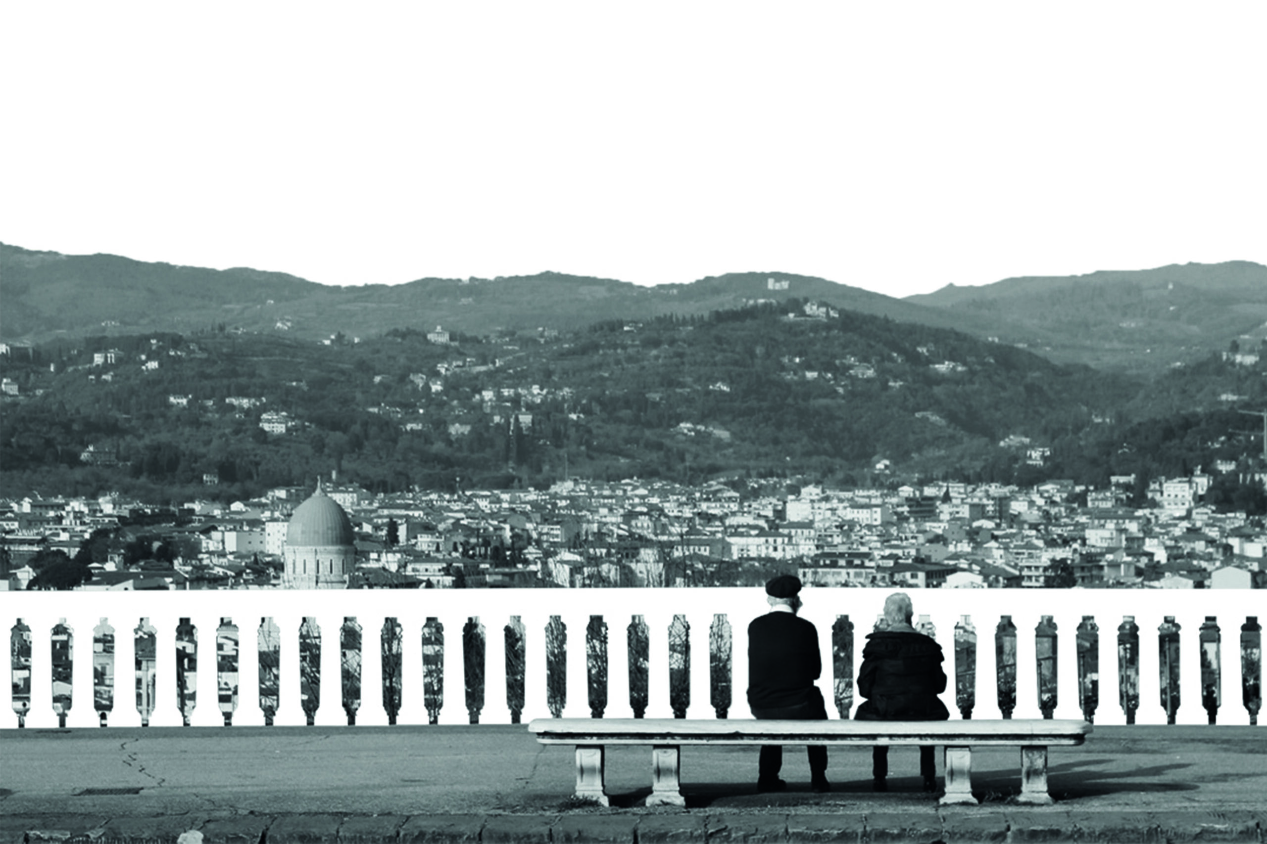 Un muro tappezzato di disegni di bambini, appesi come se fossero panni al sole; una coppia di anziani seduti su una panchina al piazzale Michelangelo ad ammirare Firenze in uno scatto in bianco e nero che ha sapore vintage; un tramonto da cartolina che si riflette nell'Arno sotto ponte Santa Trinita.