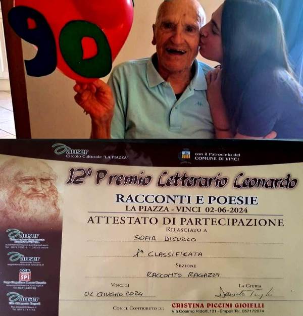 Il suo racconto è stato scelto dalla giuria su 82 elaborati. Riguarda la storia vera del suo bisnonno Remo Remetti, di 90 anni, che da bimbo che sognava la libertà ai tempi della Resistenza.