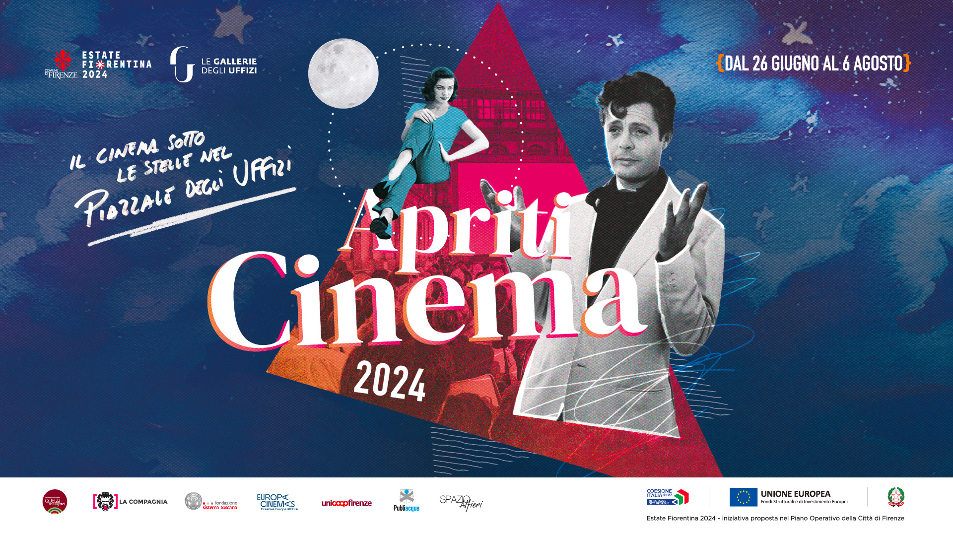 Bacall 100 e Mastroianni 100; l’omaggio a Massimo D’Anolfi e Martina Parenti del Festival dei Popoli; Le notti di mezza estate de Lo Schermo dell’Arte film festival; la rassegna dedicata al Premio Oscar Gabriele Salvatores per il Premio Fiesole; i film che raccontano l’arte in rapporto al cinema proposti dalle Gallerie degli Uffizi; la tappa di INCinema, festival del cinema inclusivo, per le persone con disabilità sensoriale; insieme ai titoli da Irlanda, America Latina, Medio Oriente, Corea, Cina, India, Stati Uniti, Francia - e naturalmente dall’Italia - sono tra i principali eventi di Apriti Cinema.