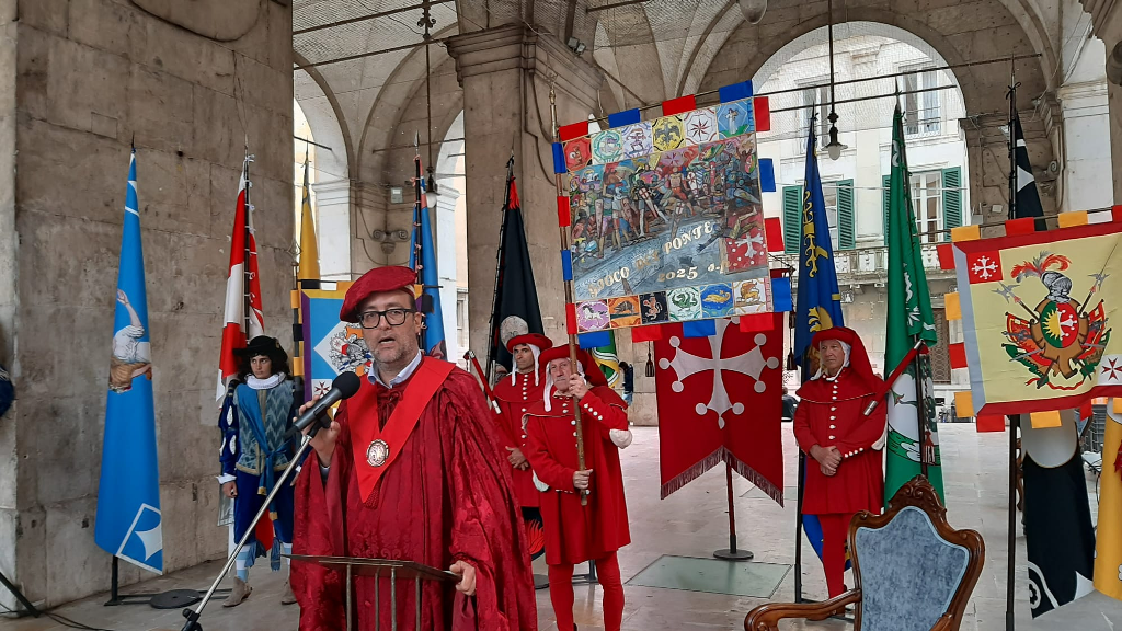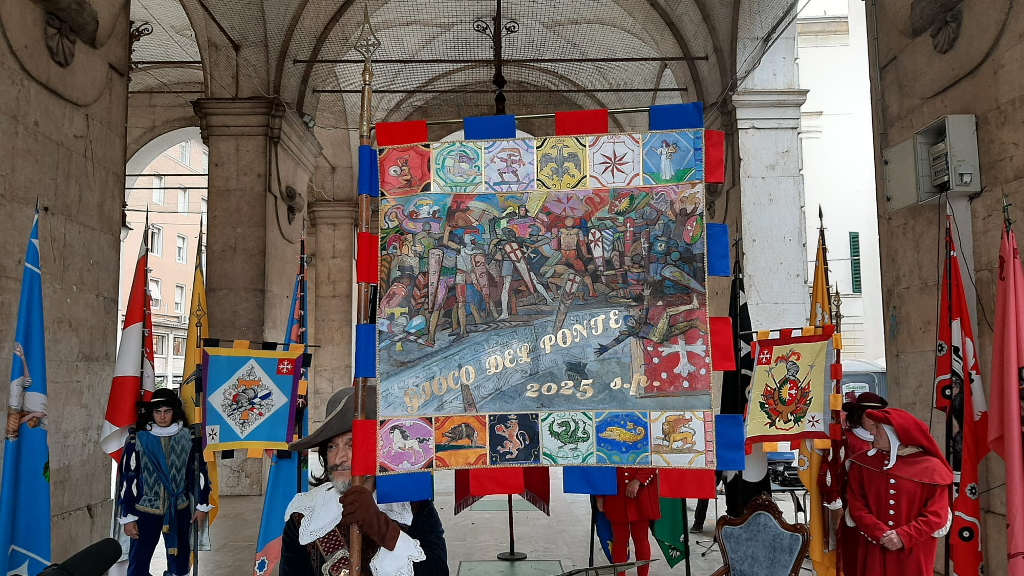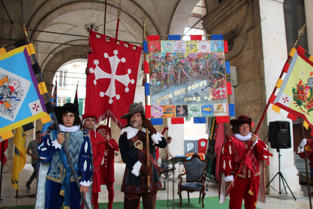 È iniziato ufficialmente il conto alla rovescia per sabato 29 giugno quando sul Ponte di Mezzo si svolgerà il Gioco del Ponte, con la Mostra delle Parti e la Disfida del Ponte. In Logge di Banchi si è svolta la cerimonia di presentazione del nuovo Palio della Vittoria, realizzato dal pittore Raffaele De Rosa, che sarà consegnato dall’Anziano Rettore, il sindaco Michele Conti, alla Parte vincitrice della battaglia. Dal 2022 il Palio è realizzato ogni anno da un pittore diverso e rimane nella disponibilità della Parte vincitrice, mentre prima veniva riconsegnato al Comune. Sul Ponte di Mezzo, intanto, è iniziato l’allestimento del carrello.