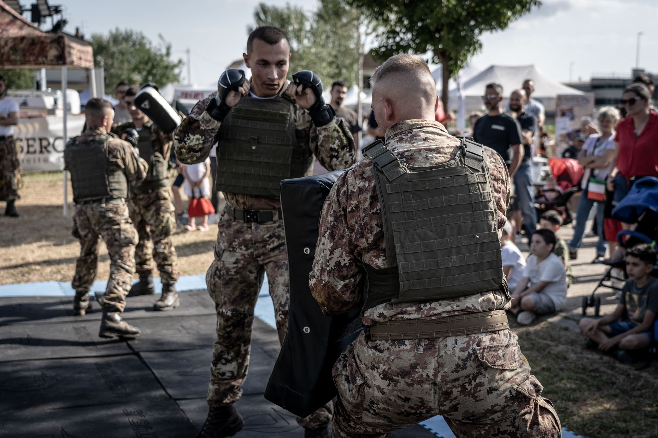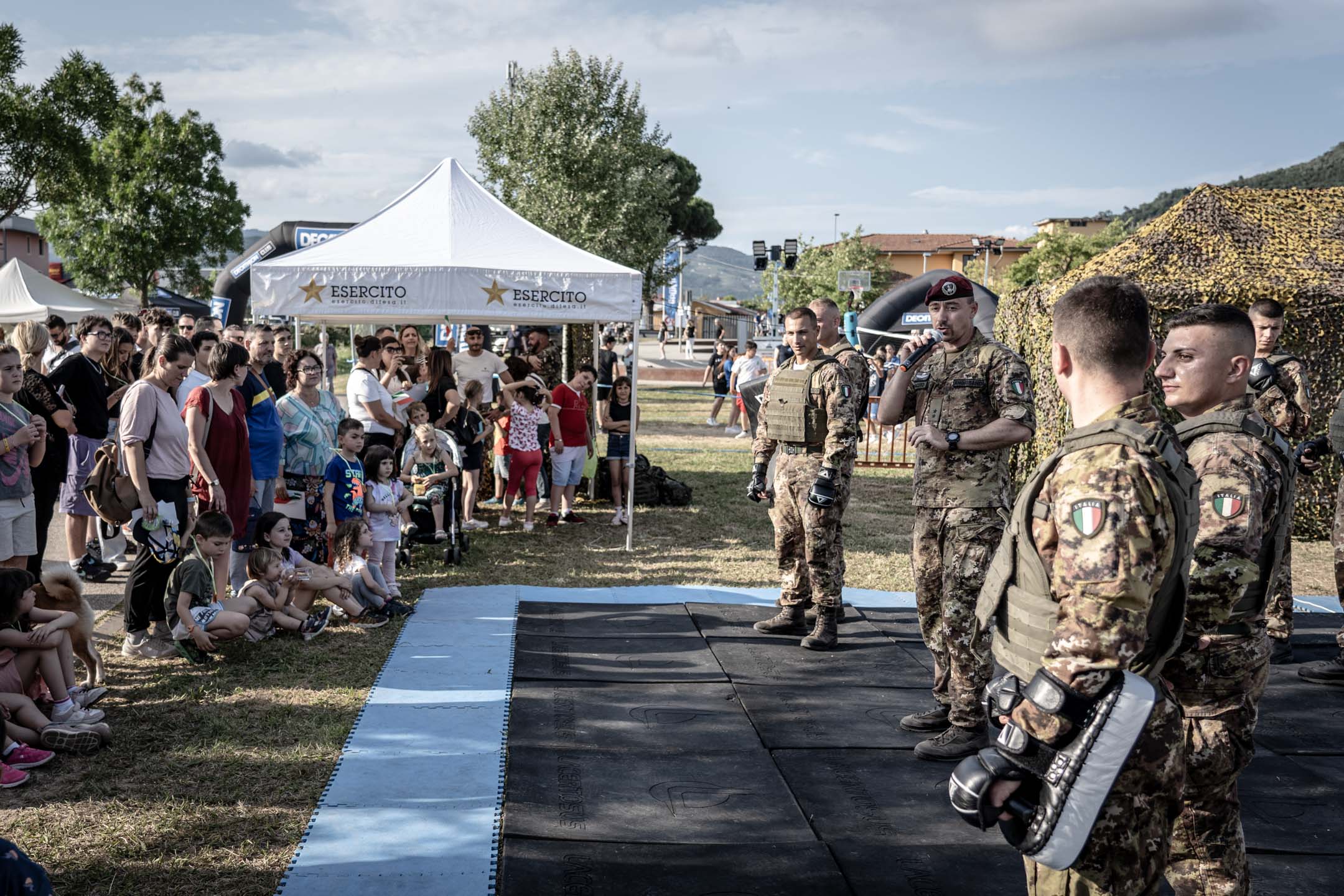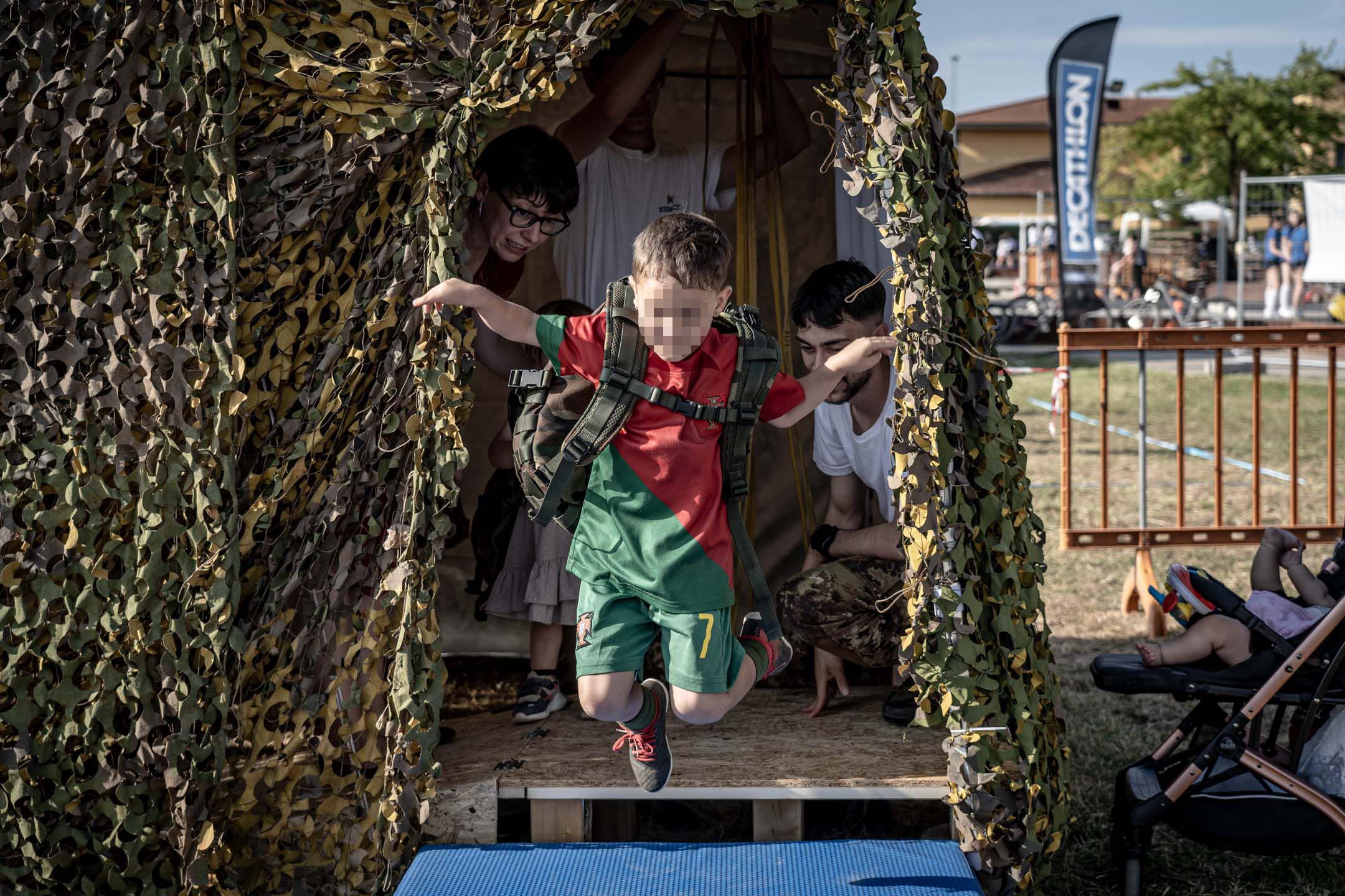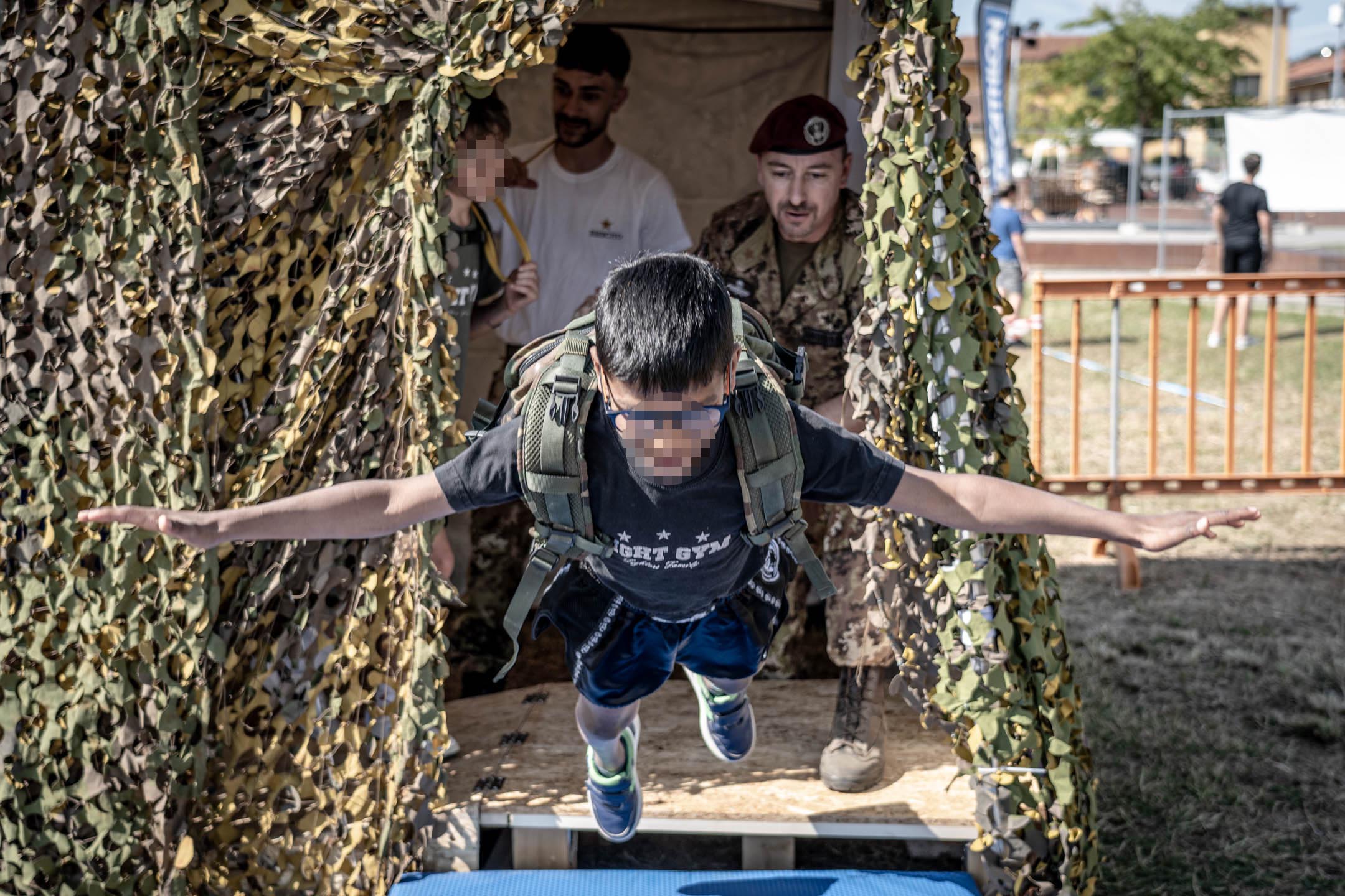 In occasione di questa manifestazione i militari dell’Esercito Italiano hanno allestito il Mini Training Camp : un percorso ad ostacoli che ha coinvolto bambini e ragazzi in un’attività ludico-sportiva che mette alla prova coordinazione motoria ed equilibrio. Notevole successo ha riscosso anche lo stand espositivo di mezzi e materiali della Forza Armata, arricchito dalla riproduzione di una falsa carlinga che ha permesso a grandi e piccoli di vivere per qualche minuto nei panni di un paracadutista e di seguire le procedure per arrivare “alla porta” apprezzandone l’emozione. Inoltre i paracadutisti del Nembo hanno proposto dimostrazioni di Metodo di Combattimento Militare evidenziando l’importanza della preparazione fisica e dell’allenamento, attività che caratterizzano la professione del soldato.