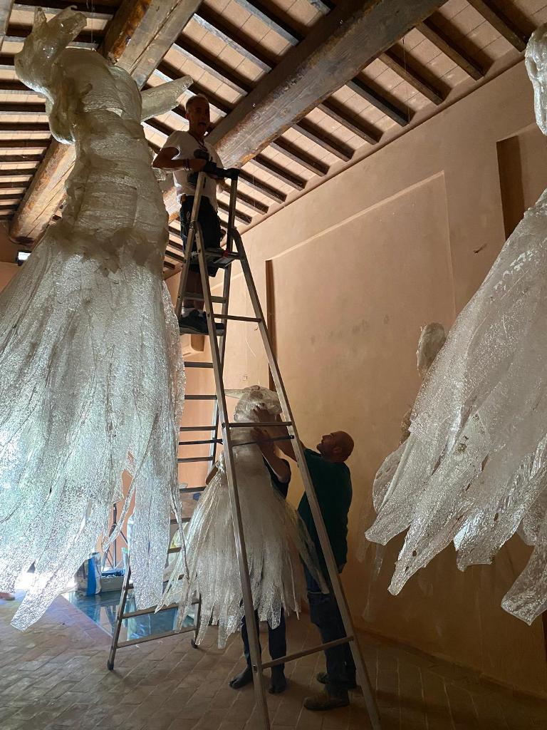 SCART invaderà il paese con coloratissime affiches fotografiche che documentano il grande lavoro di trasformazione degli scarti in costumi per Teatro del Silenzio degli scorsi anni e soprattutto presenterà le suggestive installazioni del M° Davide Dall’Osso, con il quale ha intrapreso una recente e interessante collaborazione. Dall’Osso rientra pienamente nell’ambito del pensiero SCART in quanto realizza da sempre opere utilizzando esclusivamente materiali di scarto provenienti dal mondo dell’industria. “Community” in Piazza Vittorio Veneto, “Nel vento” in via Cesare Battisti, “Duende” nel centro Polivalente San Carlo, “In un mondo perfetto” nel Teatro Comunale. Dall’Osso, che dal 2007 collabora con Maria Vittoria Gozio, ha fondato con lei l’Atelier Dall’Osso nel 2014. Dal 2020, il loro Atelier a Castelfiorentino ospita ‘Materia Futuro’, uno spazio dedicato alla sostenibilità, all’economia circolare e al recupero della plastica,