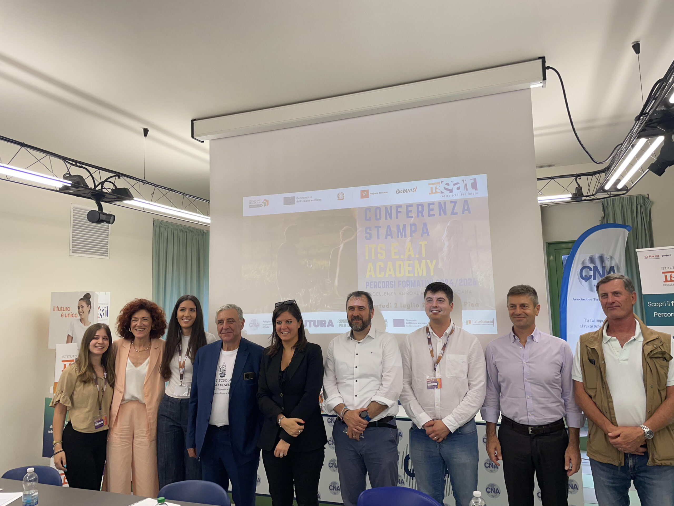 Presentato questa mattina - nella sala stampa Bonsignori di CNA Pisa - il corso Enofood experience alla presenza del presidente territoriale di CNA Pisa, Francesco Oppedisano, dell'assessora regionale alla formazione professionale Alessandra Nardini, del presidente ITS EAT Academy Fabrizio Tistarelli e della direttrice Paola Parmeggiani; alla conferenza stampa hanno preso parte anche gli imprenditori Alessandro Agostini (Fattoria Le Prata) e Leonardo Paolino (Podere del Pari) nonché Chiara Bertelli e Iacopo Parrini, ex studenti di ITS EAT Academy.