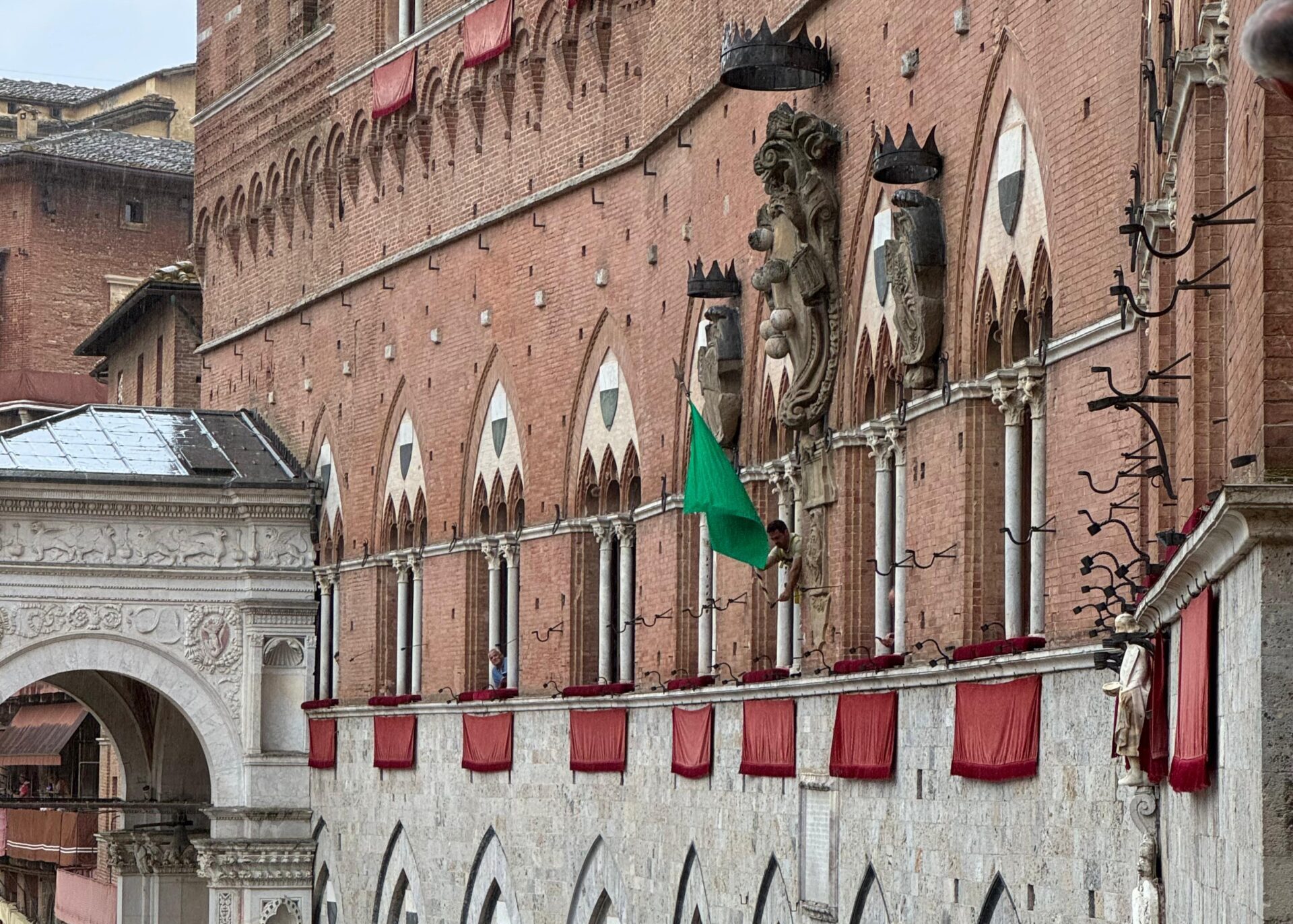 E’ stata esposta anche oggi, mercoledì 3 luglio, la bandiera verde alle trifore di Palazzo Pubblico: è stato nuovamente rimandato il Palio del 2 luglio 2024 a causa delle avverse condizioni del meteo. La pioggia ha cominciato a scendere su Piazza del Campo intorno alle ore 18, rendendo impraticabile il tufo.