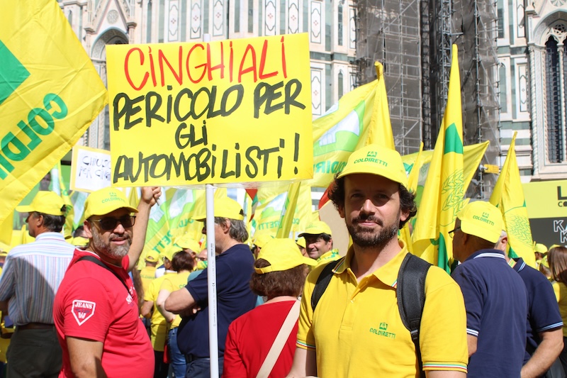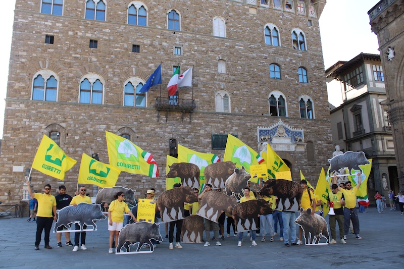 Campagna e città assediate dai cinghiali e dalla fauna selvatica. Sono oltre 400 mila in Toscana gli animali a piede libero diventati un’emergenza economica, ambientale, sanitaria e di sicurezza pubblica per tutta la collettività. Se prima il problema era confinato ai “soli” raccolti degli agricoltori, e per lo più nei terreni vicino ai boschi o limitrofi ai parchi e riserve, oggi non è più così. La calamità dei cinghiali è arrivata anche nei centri abitati, nei parchi giochi e persino sulle spiagge, come hanno voluto rappresentare i giovani agricoltori che da Porta a Prato passando per Palazzo Vecchio e Piazza Duomo hanno dato vita alla colorita “marcia” per far toccare con mano ai cittadini e ai tanti turisti la dimensione di un disequilibrio sempre più pericoloso.
