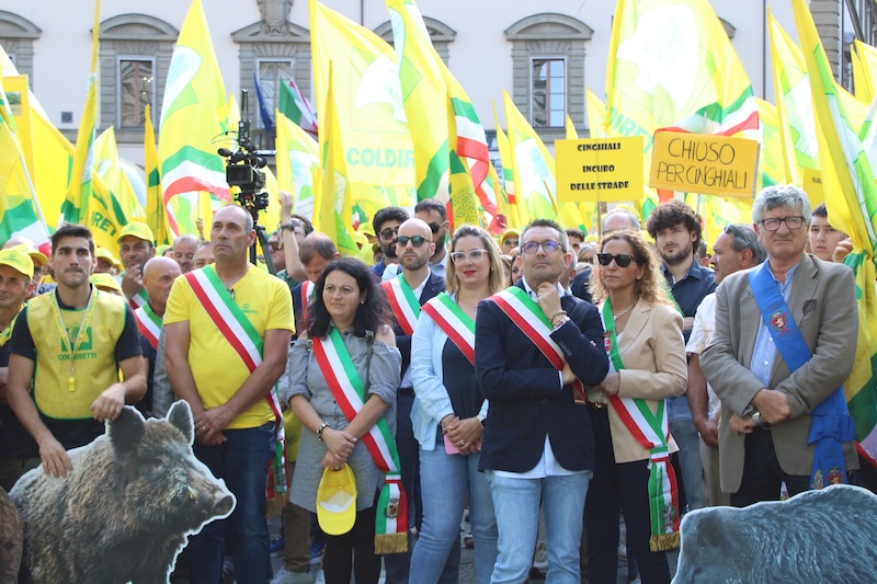 Fauna selvatica al centro della manifestazione a Firenze di Coldiretti Toscana, che denuncia danni ai raccolti, incidenti stradali record e rischio Peste Suina. Giani e Saccardi assicurano provvedimenti