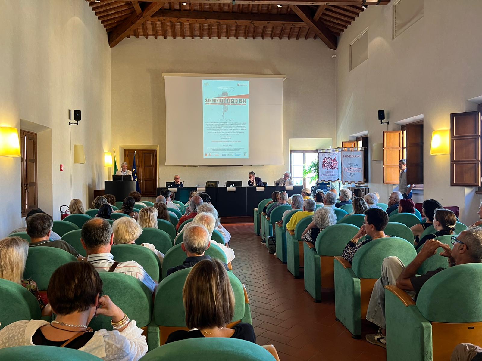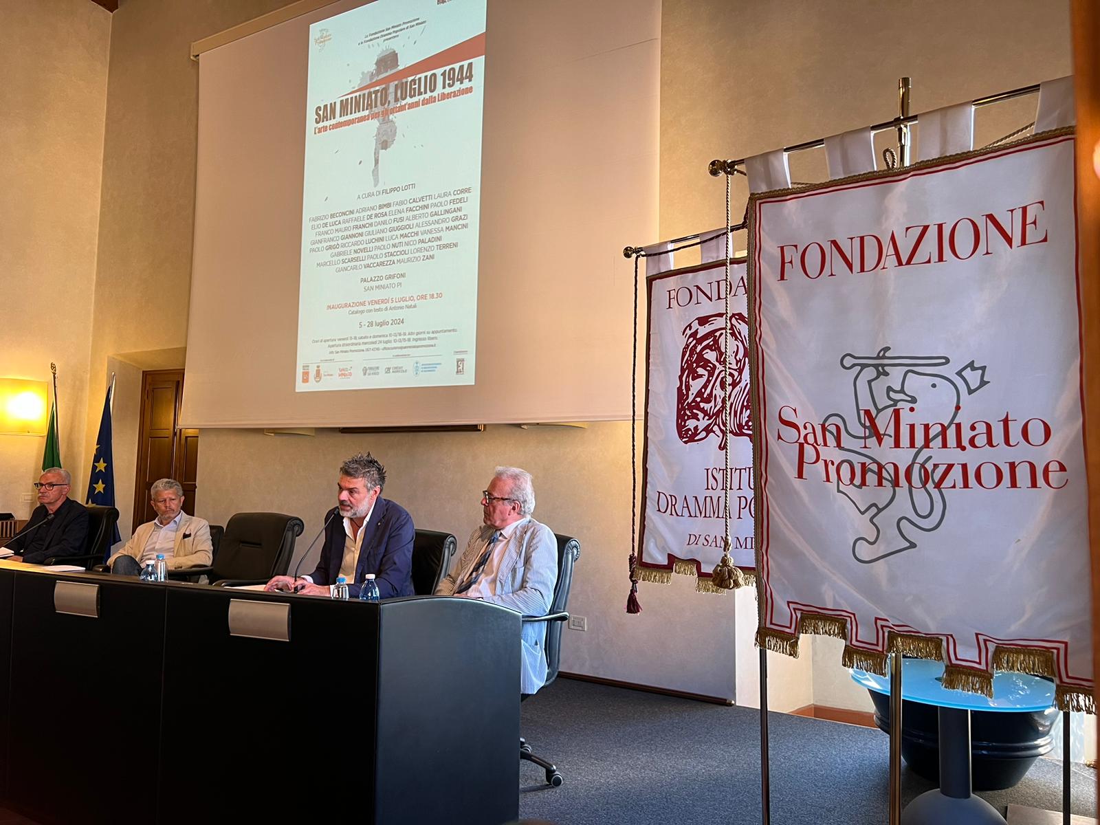 Inaugurata venerdì scorso la Mostra a Palazzo Grifoni (San Miniato) dedicata agli 80 anni dalla liberazione della città della Rocca. Dopo i saluti della professoressa Daniela Di Vita per conto di Fondazione CRSM e del sindaco di San Miniato Simone Giglioli, nel merito della rassegna artistica sono entrati il presidente delle due Fondazioni Marzio Gabbanini, il curatore Filippo Lotti (che ha letto anche un messaggio di Renzo Ulivieri, uno dei pochi superstiti della Strage del Duomo ancora in vita) e il professor Antonio Natali. Il presidente Gabbanini ha proposto pubblicamente di regalare all’Anpi locale alcune delle opere in esposizione (le restanti diventeranno patrimonio di Dramma Popolare e San Miniato Promozione).