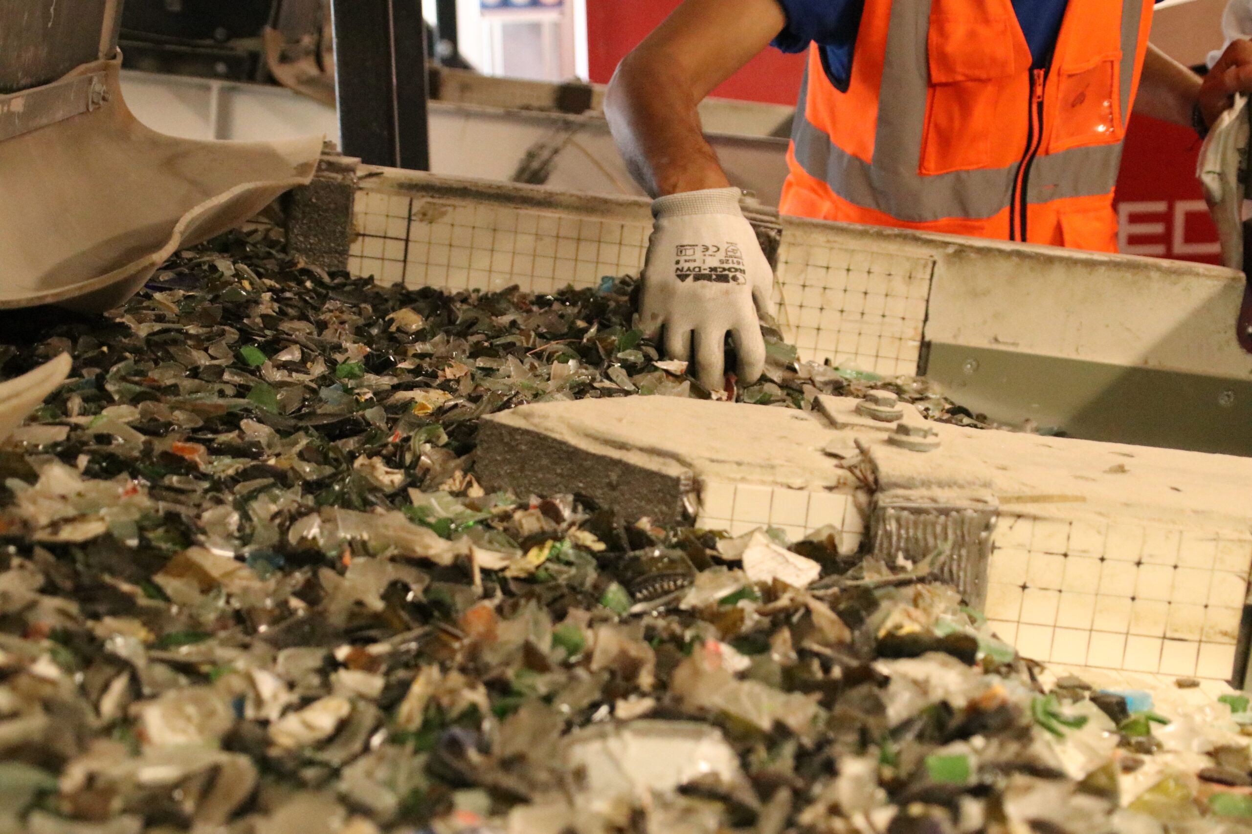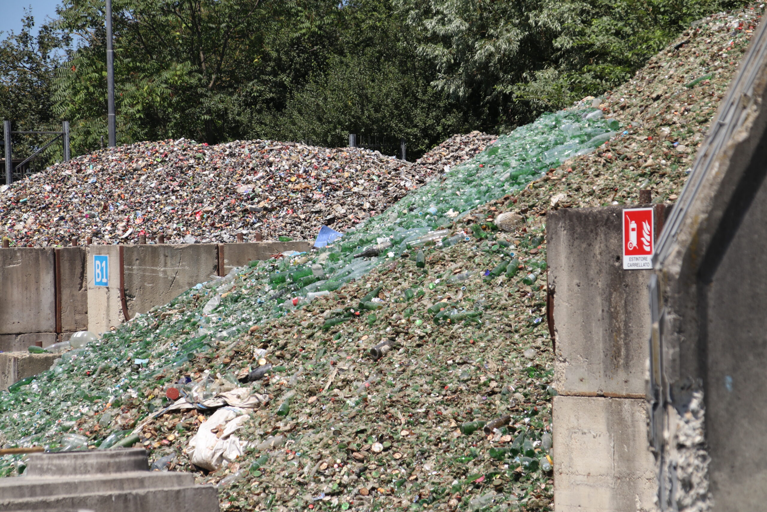 Tra gli enormi cumuli scaricati nell'impianto sono presenti però anche altri materiali, gettati insieme a bottiglie e vasetti. Tra questi si trovano alluminio, ferro, ceramica e altro che, insieme al vetro di scarto, vengono comunque recuperati e avviati a riciclo in altri impianti. Mentre il 4% finisce in discarica, circa l’82% è invece il vetro recuperato, il cosiddetto pronto forno misto verde, che torna in vetreria. "È uno dei pochi esempi in Italia di economia circolare reale" afferma Silvio Marano, direttore operativo di Vetro Revet, "la Revet si occupa della raccolta, noi ripuliamo, il vetro torna in vetreria". Selezionato tra tecnologia e a mano, ripulito e sminuzzato, il viaggio del vetro stavolta è breve: solo 1 km in linea d’aria e arriva alla seconda tappa, la Zignago Vetro, produttrice di bottiglie nel settore alimentare, beverage ma anche vasi destinati alla cosmesi.