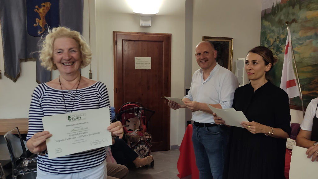 Al termine dell’esperienza, che si è tenuta nei locali messi a disposizione dall’associazione Auser, l’amministrazione comunale ha organizzato una cerimonia ufficiale nella sala consiliare di Barberino Val d’Elsa cui hanno preso parte le allieve, provenienti da più parti del territorio toscano, in primis il Chianti ma anche Firenze e i comuni limitrofi, da Impruneta a Poggibonsi, da San Casciano a Castelfiorentino, e le insegnanti, tutte autoctone, Sabina Pelli, Franca Conforti, Maria Canocchi e Vincenza Manfredi. A diplomare ufficialmente le merlettaie di Barberino Tavarnelle, un gruppo variegato e caratterizzato da un ampio range di età, dai 18 agli 88 anni, è stato il sindaco David Baroncelli, insieme alla vicesindaca Elena Borri, all’assessore Paolo Giuntini e alla presidente di Chiantiform Elisa Corneli che ha curato la parte organizzativa dell’attività formativa.