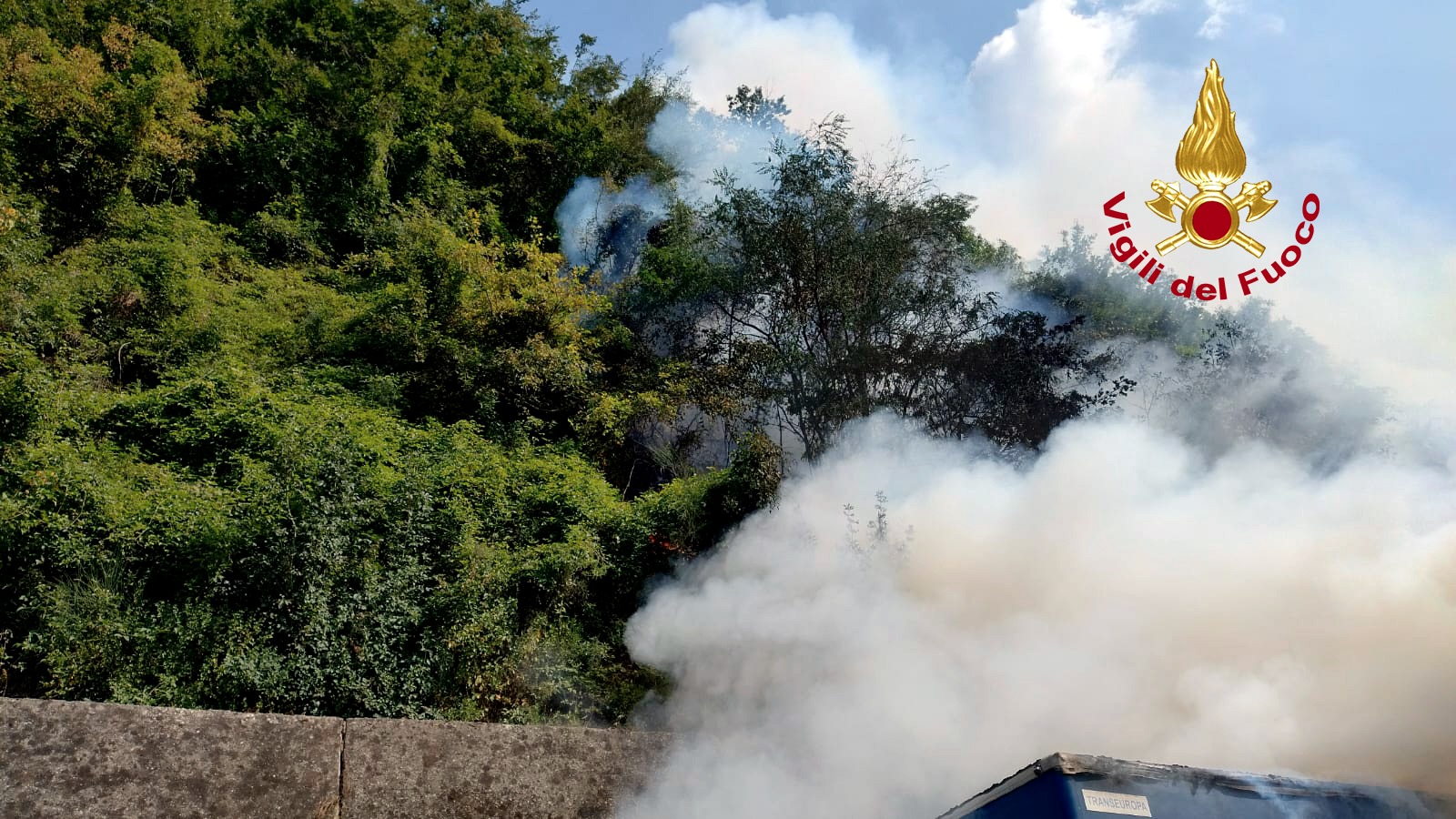 Incendio boschivo ai margini dell'A1, squadre al lavoro