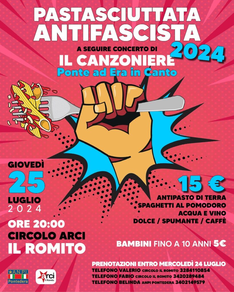 In ricordo di quella memorabile giornata l'Anpi di Pontedera organizza per giovedì 25 luglio alle ore 20.00 presso il Circolo ARCI il Romito la pastasciuttata antifascista, invitando tutte le cittadine e i cittadini democratici e antifascisti di Pontedera a partecipare, per ricordare i Cervi e per condividere insieme quello che hanno rappresentato e che rappresentano, perché la loro storia è la nostra storia.