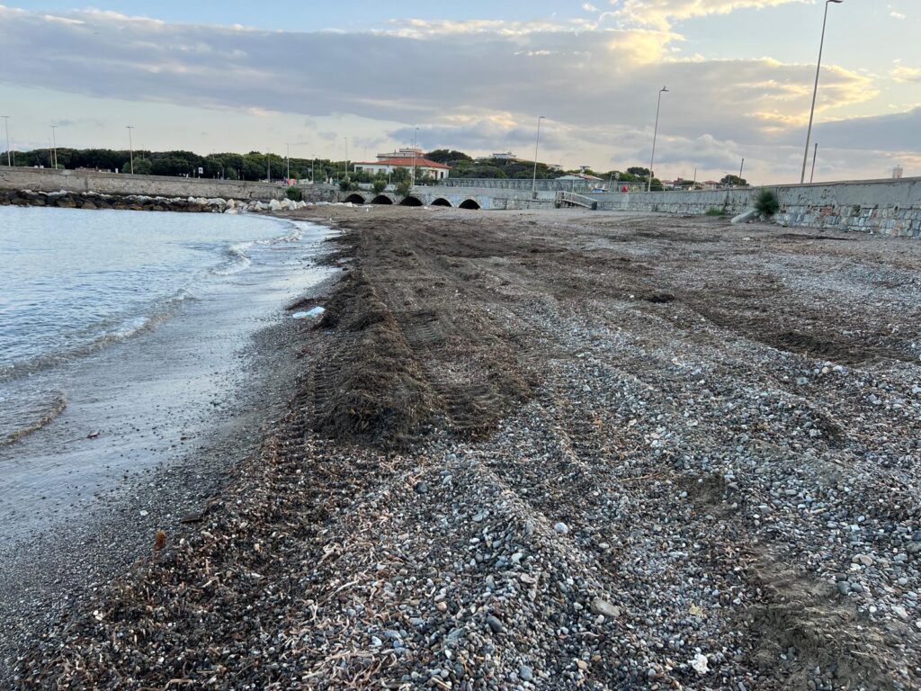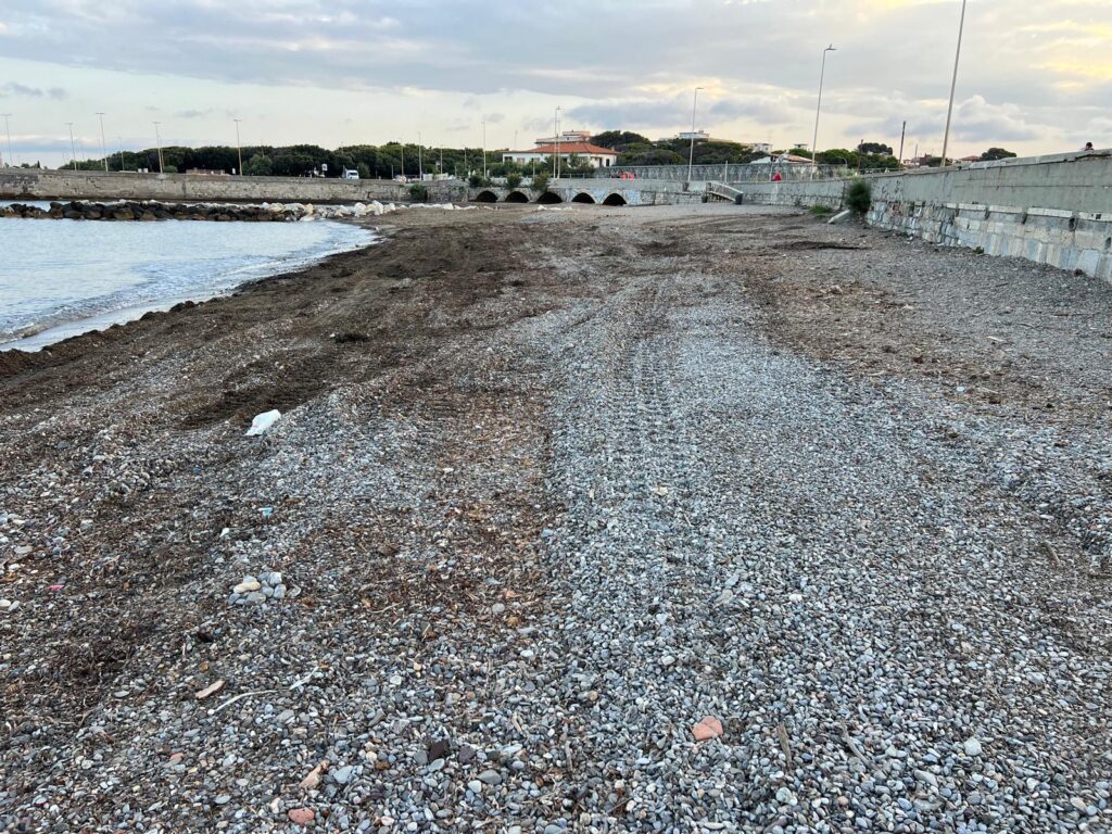 Per la realizzazione dell’intervento è stata creata ad hoc una pista in acqua e una volta rimosso, materiale è stato avviato a trattamento e si è provveduto, al termine delle operazioni, a ripristinare la linea di costa.