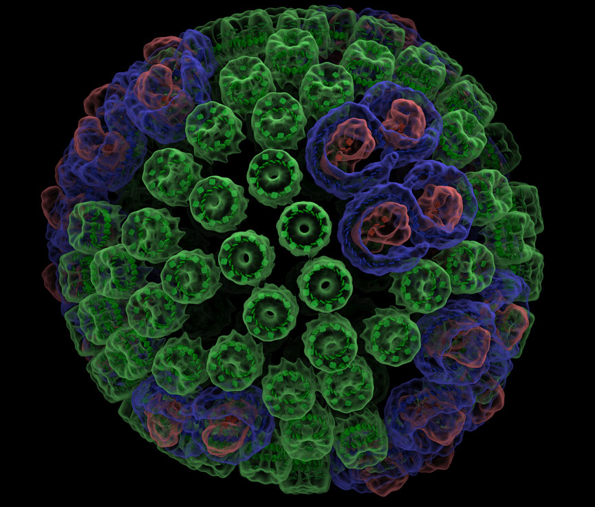 * Foto in allegato - I cromatofori, unità fotosintetica dal batterio viola R. sphaeroides (dimensioni ≈ 60 nm), contengono circa 5000 molecole di batterioclorofilla e sono composti da diversi complessi molecolari: LH2 (in verde), LH1 (in blu) ed i centri di reazione (in rosso). L'energia solare catturata dai cromatofori viene trasportata ai centri di reazione con una efficienza vicina al 100%. La figura è stata presa da https://naturedocumentaries.org/chromatophore/.