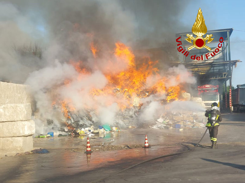 I vigili del fuoco del comando di Lucca stanno intervenendo a Pietrasanta, Via delle Colmate, per un incendio che ha coinvolto materiale esterno ad una azienda che tratta il riciclo dei rifiuti.
