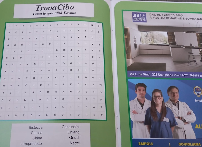 Ovviamente non manca il rebus di copertina, il Cruciverbone e gli unisci i puntini con luoghi tipici dell'Empolese Valdelsa e del comprensorio del cuoio. Troverete anche i Sudoku, cruciverba dedicati ai più giovani, allo sport e alla cultura, con anche delle new entry. Un modo per esercitare la propria conoscenza sulla Toscana, sulla sua storia e sui personaggi storici e contemporanei. Nell'ultima pagina potete accedere alla pagina delle soluzioni tramite un pratico Qr Code.