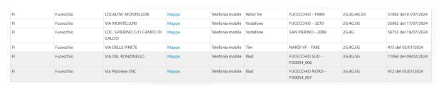 I dati sono stati presi dal sito di ARPAT dove fino a qualche giorno fa era possibile consultare una mappa e un elenco delle vecchie e delle nuove installazioni in tutta la Toscana https://sira.arpat.toscana.it/sira/misure_rf/portale.php#. A oggi il sito sembra non più funzionante ma si spera che sia ripristinato quanto prima in quanto strumento pubblico, utile per monitorare lo stato delle autorizzazioni delle installazioni per le nuove antenne soprattutto in un periodo come questo in cui il tema è sempre più sentito dai cittadini che necessitano di un’informazione chiara e trasparente dagli enti e dalle istituzioni. Per cui si invitano tutti i cittadini interessati a scrivere a pfr_sira@arpat.toscana.it affinché il servizio venga rimesso in opera.