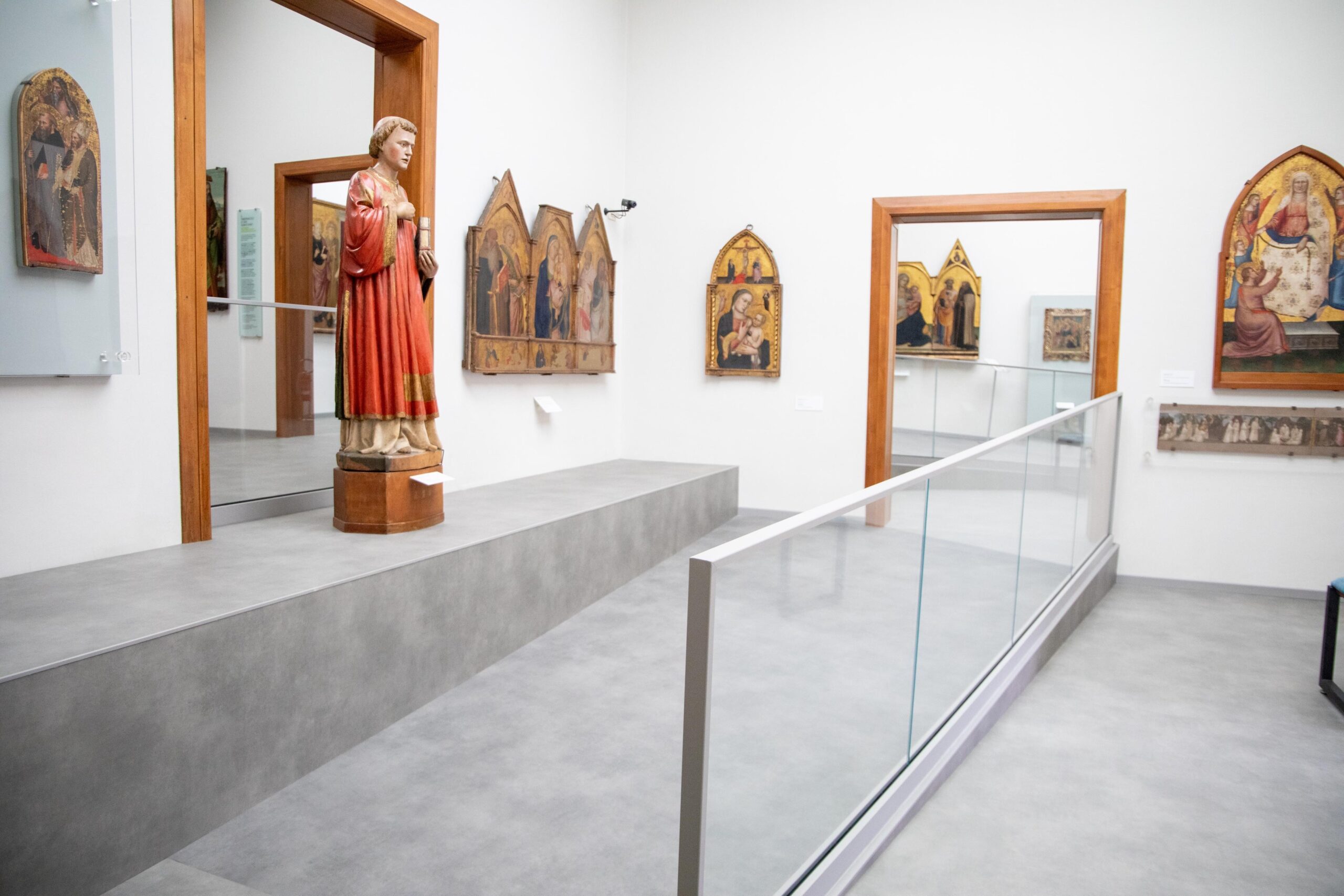 Nell’ultimo anno le nuove strumentazioni, le proposte didattiche e i sussidi acquistati sono stati utilizzati da tutti i visitatori e si sono rivelati estremamente efficaci. Al Museo della Collegiata i lavori sono stati suddivisi in due momenti: il primo, realizzato nel dicembre del 2023, ha installato, al primo piano del Museo, una nuova pavimentazione flottante che ha consentito di superare i dislivelli presenti tra le sale.