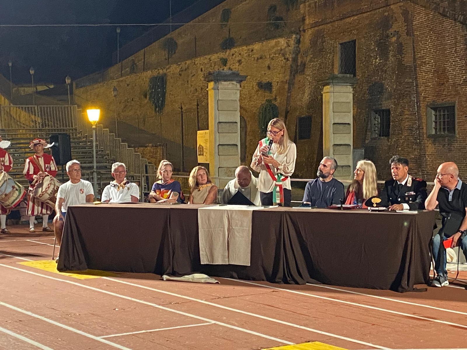 Si è svolta sul palco del Palio, in Piazza Vittorio Emanuele II, la presentazione dei cenci. La cerimonia è stata preceduta dalle apprezzate esibizioni delle 4 contrade (Porta Caracosta, Porta Fiorentina, Porta al Palagio e Santa Maria al Pozzolo), che Sabato 31 agosto si sfideranno per la conquista della 55^edizione del Palio del Cerro.