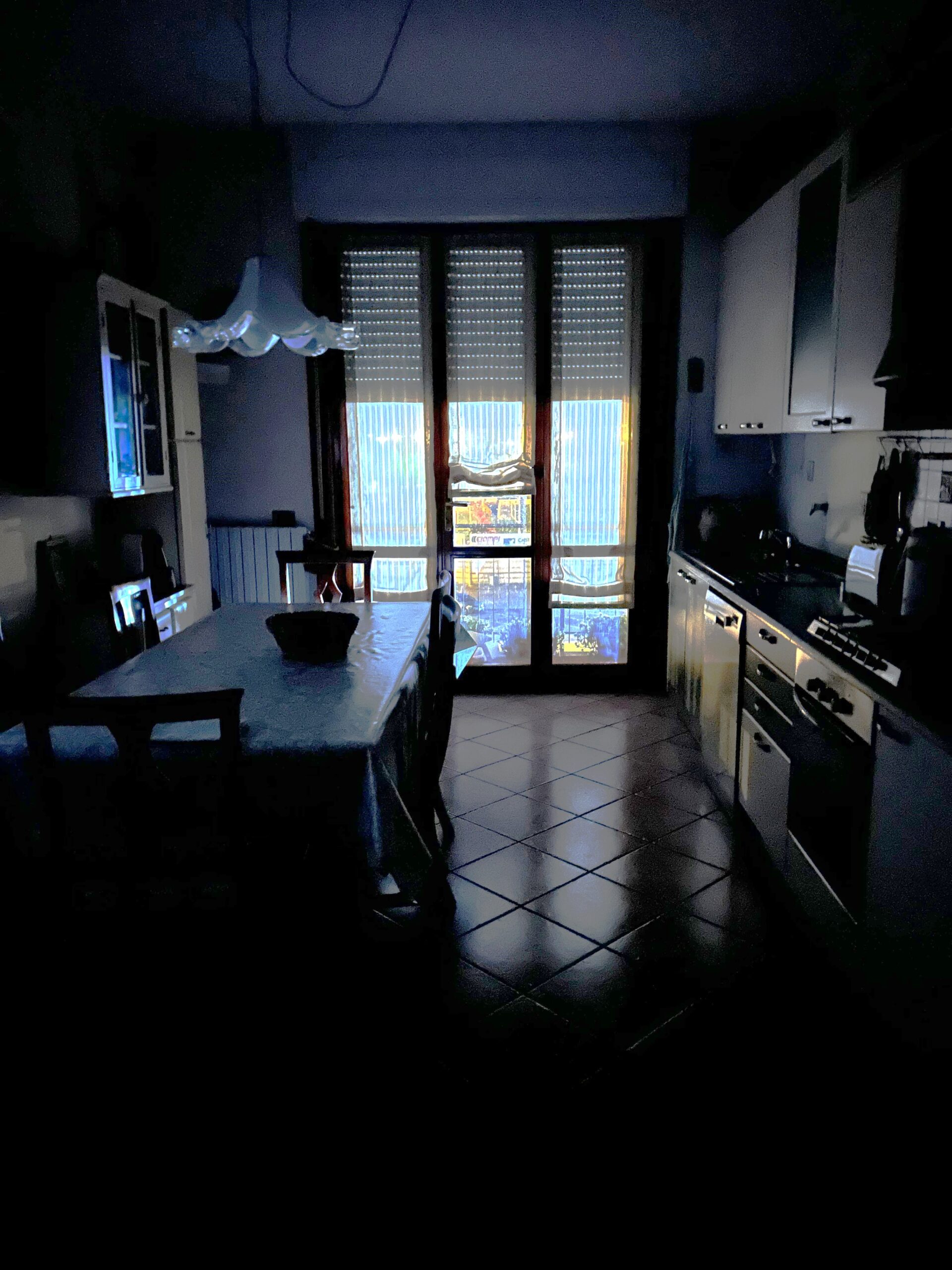 Una luce blu-azzurra filtra attraverso le persiane, spesso per tutta la notte.