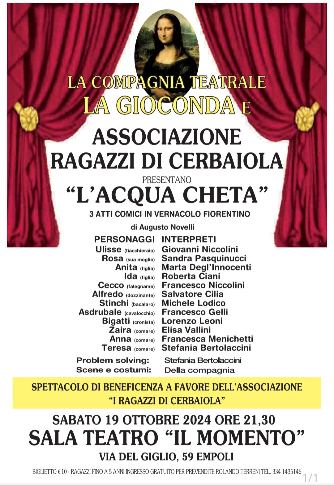 Uno spettacolo senza confini né barriere andrà in scena il 19 ottobre al Teatro Il Momento di Empoli. I ragazzi di Cerbaiola tornano sul palco con la commedia brillante “Acqua cheta“.