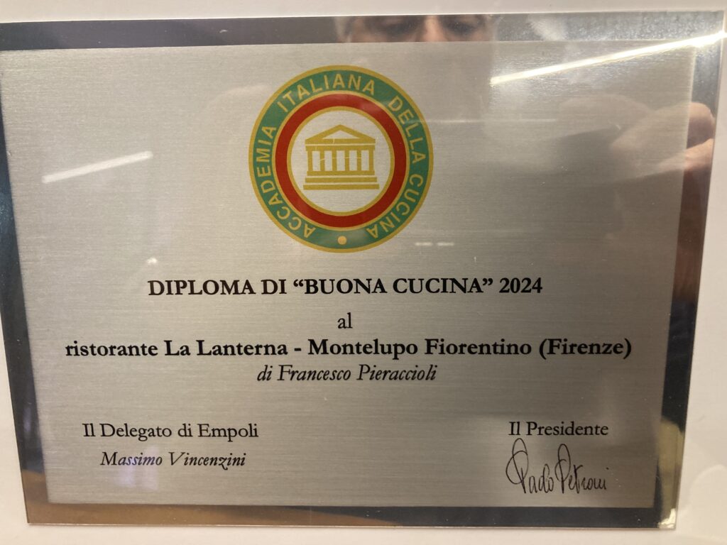 L’Accademia Italiana della cucina ha assegnato al ristorante "La Lanterna" il "Diploma di buona cucina" per il 2024. Si tratta di un riconoscimento, spiegano dall'Aic delegazione di Empoli, assegnato a ristoranti, in Italia e all'estero, che operano nel rispetto della tradizione e della qualità. È stata la delegazione di Empoli presieduta da Massimo Vincenzini a candidare al prestigioso riconoscimento La Lanterna di Pulica, frazione di Montelupo Fiorentino.