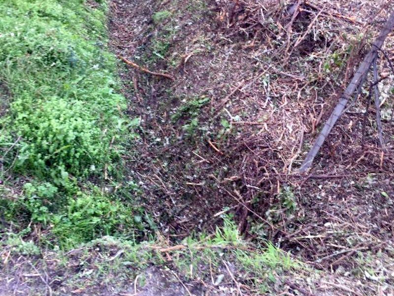 Il lettore si è poi recato di nuovo sul posto dopo i lavori di ripulitura e di taglio dell'erba e ha notato che "gli operatori hanno tagliato l’erba sulla parte sinistra della ferrovia, ma poiché utilizzano soltanto strumenti meccanici (trincia) hanno lasciato tutta l’erba e gli sfalci anche di legno lì a terra, anche dentro al fosso."