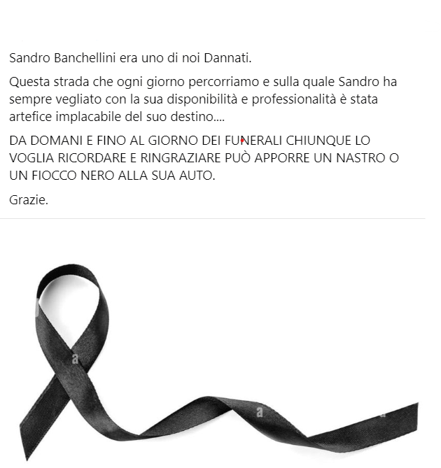 All'interno della pagina che lui stesso gestiva si sono mobilitati i membri che ne fanno parte con un'iniziativa tanto simbolica quanto significativa. Sul gruppo infatti le persone hanno deciso di ricordare la figura di Sandro Banchellini con un gesto semplice ma efficace e d'impatto: apporre un nastro/fioco nero alla propria auto.