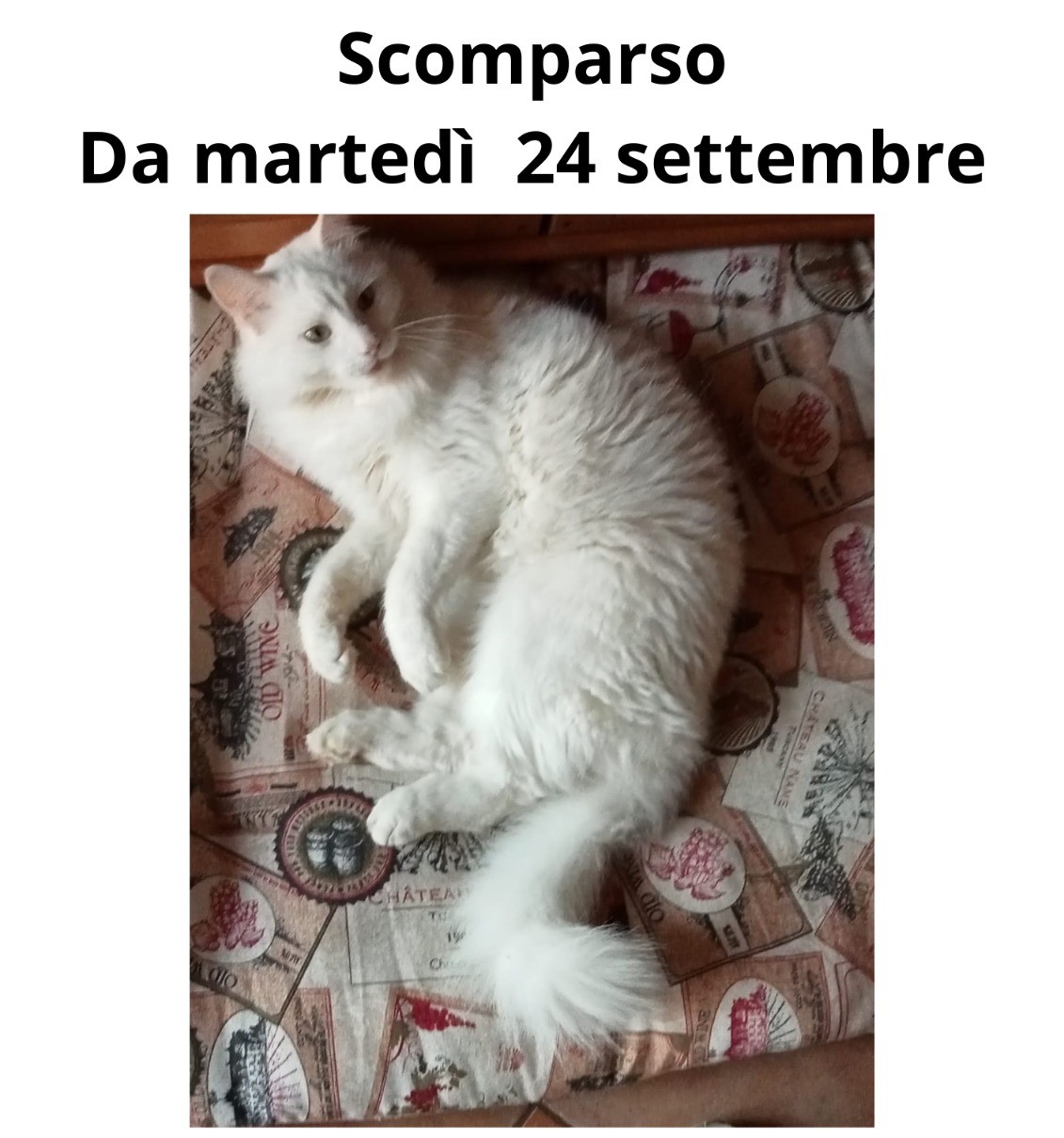 È scomparso lo scorso 24 settembre e di lui non ci sono più tracce. La padrona del gatto 'Blu' ha fatto quindi un appello per ruitrovare il suo animale domestico. Il gatto è scomparso in zona via Carlo Alberto dalla Chiesa, a Cerreto Guidi. Si tratta di un gatto bianco a pelo lungo, che ricorda la razza di Angora turco. Chi lo vedesse o avesse qualche informazione può contattare Serena, la padrona del felino, al 3406787635