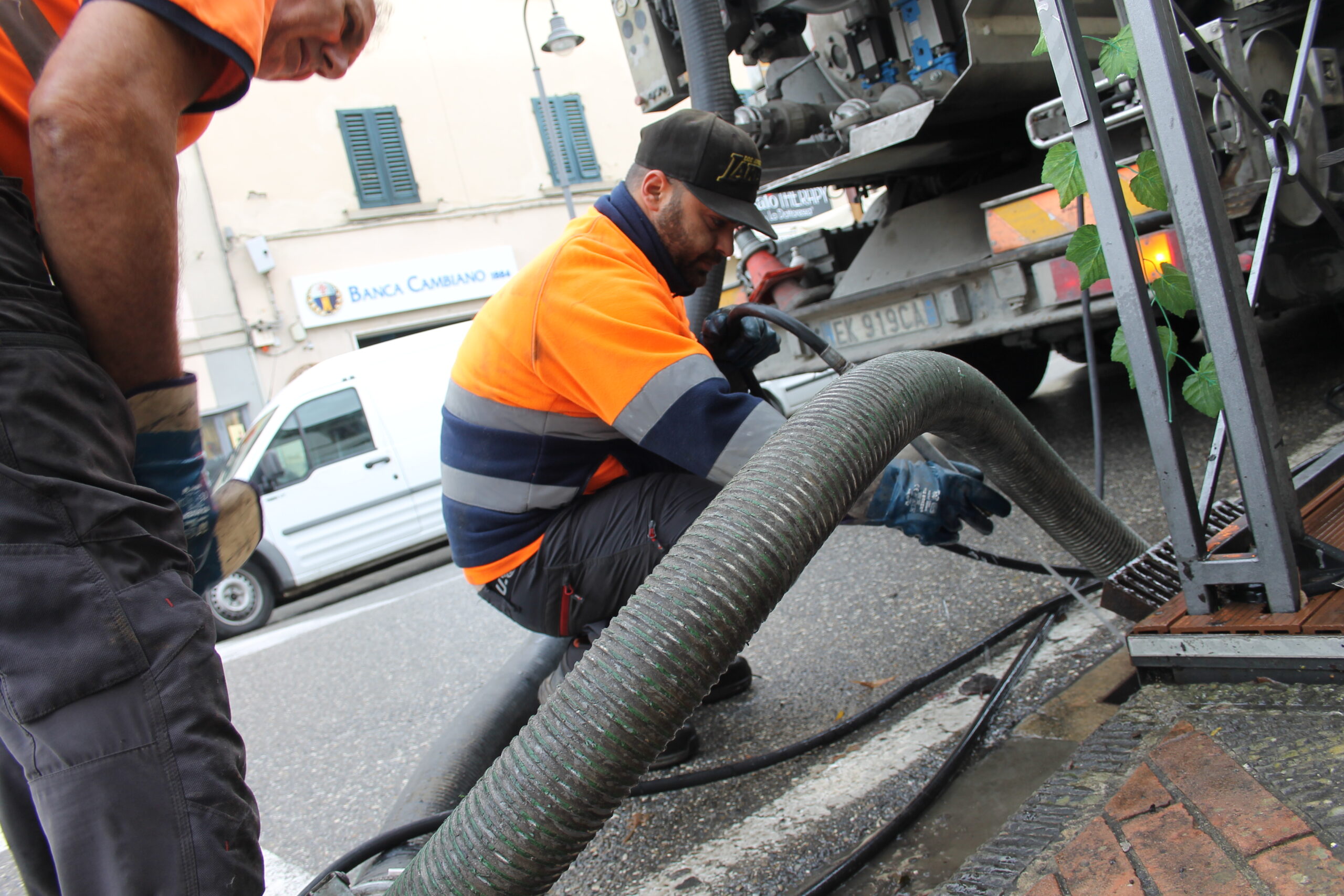Pubblicato il 9 Ottobre 2024 alle 2560 × 1707 in Manutenzioni, operai al lavoro per pulire le caditoie a Vinci