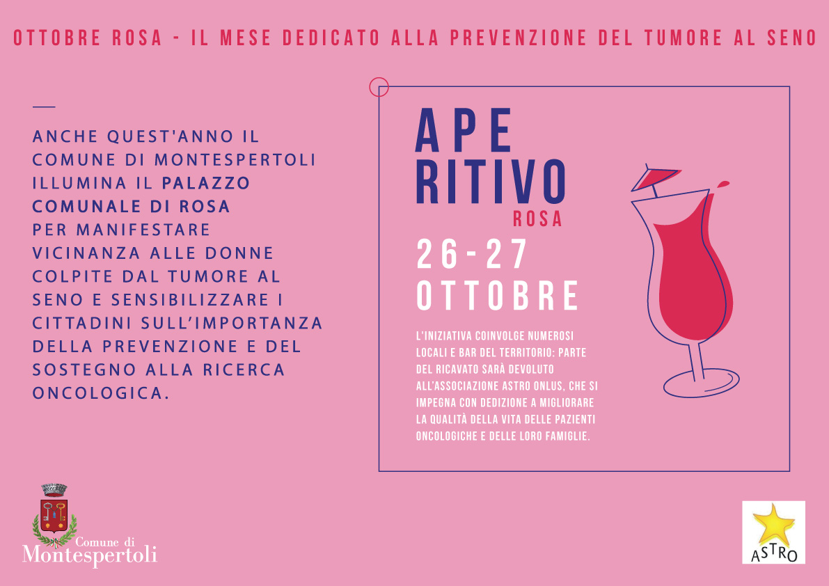 Invece, per sabato 26 e domenica 27 a Montespertoli è organizzata l’iniziativa “Aperitivo Rosa”. L'iniziativa coinvolge numerosi locali e bar del territorio, uniti per una buona causa: parte del ricavato sarà infatti devoluto all’Associazione Astro Onlus, che si impegna con dedizione a migliorare la qualità della vita delle pazienti oncologiche e delle loro famiglie.