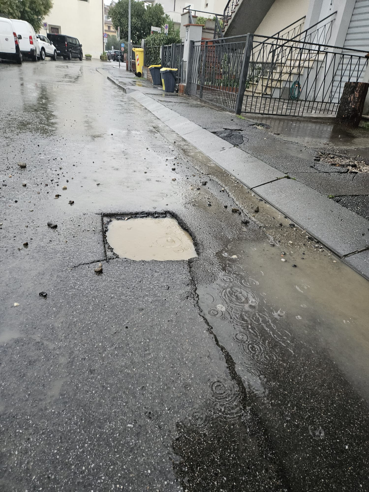 Si, di nuovo abbandonato, perché da quel 16 settembre scorso, quando sono stati abbattuti 5 pini, nessuno si è più visto a lavorare, anzi, al degrado si è aggiunto il dissesto delle strade circostanti, impegnate e gravate dei mezzi pesanti serviti per abbattere gli alberi. Strade divenute pericolose per i cittadini che passano a piedi, in bicicletta o in moto. Ancora una volta, senza informare la cittadinanza il cantiere fantasma è in attesa.