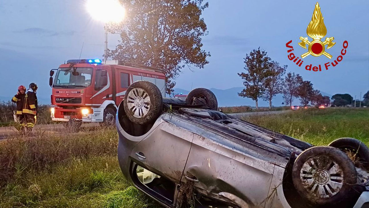 Il conducente alla guida di un’auto ha perso il controllo della vettura e si è ribaltato in un campo adiacente alla sede stradale.