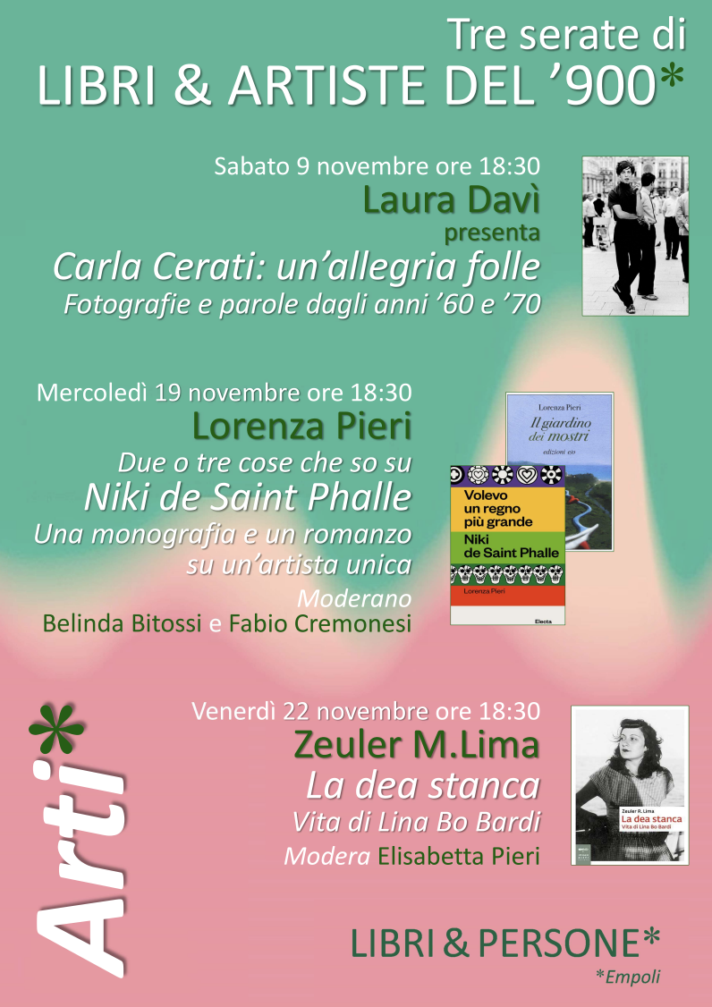 Dopo l’avvio della rassegna Musica* - Tre serate di LIBRI & SUONI, l’autunno alla Libri & Persone* (nuovo nome de La San Paolo* Libri & Persone) prosegue con un’altra sapida rassegna, stavolta dedicata a tre donne che, in ambiti artistici diversi quali la fotografia, la scultura e l’architettura, hanno lasciato un segno nel Novecento.