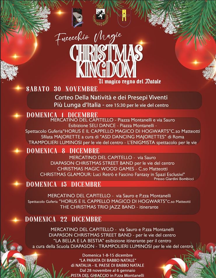 Giunto alla sua 13esima edizione, l’evento cambia volto e nome, diventando ‘Fucecchio Magic Christmas Kingdom’. Ma non solo: quest'anno cambia anche location, spostandosi nel suggestivo Parco Corsini che contribuirà a incrementare l’alone di magia che da sempre caratterizza l'evento e che tanto piace ai bambini e alle famiglie. L’obiettivo è includere non solo il centro storico ma anche la parte bassa della città, creando un’esperienza che valorizzi l’intero territorio.