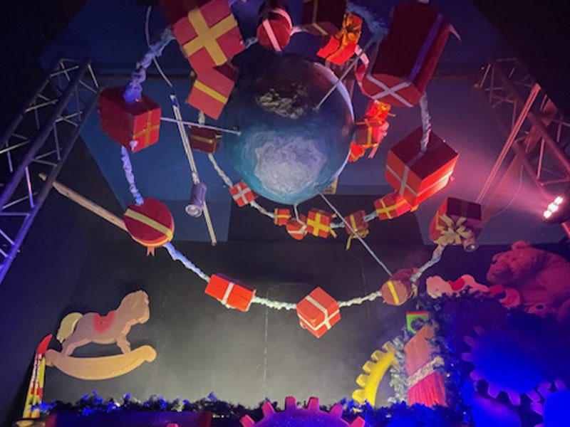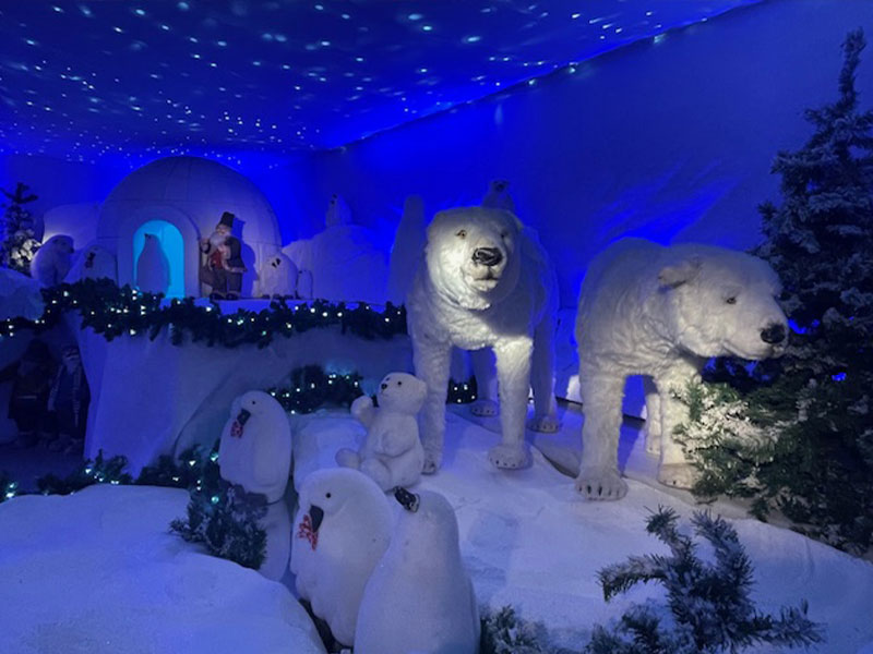 Il Polo Nord, dove ci si può immergere nel regno dei ghiacci, fra igloo, orsi e pinguini; La Fabbrica dei Giocattoli, dove gli elfi, in mezzo a strani ingranaggi, lavorano all’originaria macchina fabbricatrice di giocattoli, sovrastati dal pianeta Terra intorno al quale ruotano moltissimi regali;