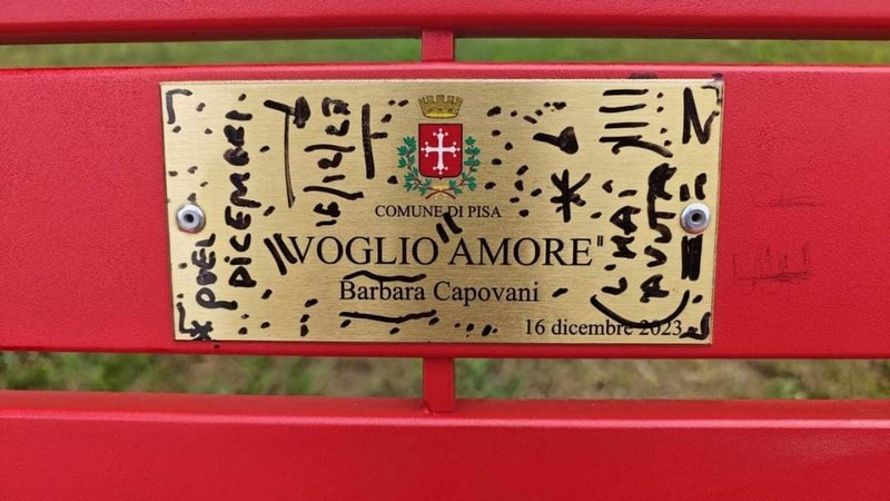 Scritte offensive sono state rinvenute sulla targhetta collocata sulla panchina rossa in memoria di Barbara Capovani, la psichiatra uccisa nell'aprile del 2023 fuori dal servizio di psichiatria dell'Asl Toscana nord ovest. Le scritte vergate con un pennarello nero sulla panchina, inaugurata nei mesi scorsi dal Comune di Pisa, sono già state rimosse.