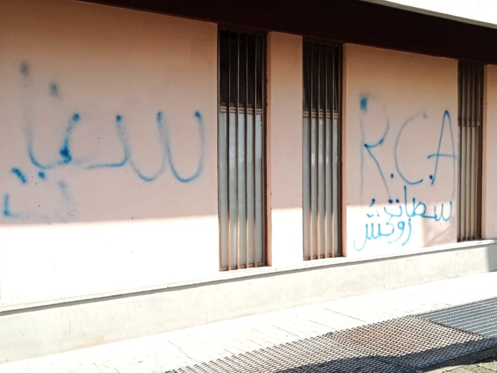 Vandali nel quartiere stazione: scritte e disegni sul muro di un condominio