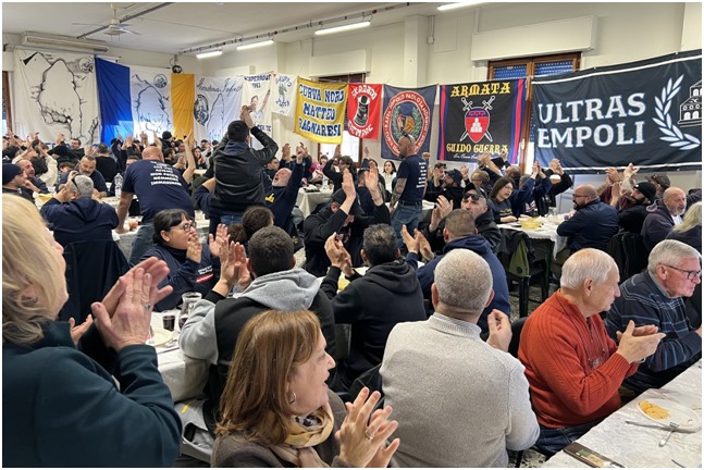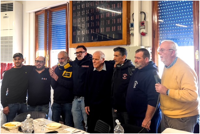 Alle ore 13, tutti si sono ritrovati presso la Casa del Popolo di Santa Maria per un pranzo conviviale, durante il quale sono stati intonati cori in onore di Emiliano e di tutti gli ultrà scomparsi nel corso degli anni. Un momento di unione e di festa che ha rafforzato i legami tra i partecipanti e celebrato l’eredità di chi, come Emiliano, ha lasciato un segno indelebile nel cuore degli appassionati di calcio.