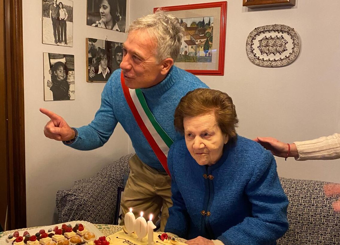 Una città sempre più longeva. Luciana Biagioni taglia il traguardo dei cento anni. Ad omaggiarla nella sua dimora, l’assessore Adolfo Bellucci che le ha portato un dono floreale e una pergamena ricordo.