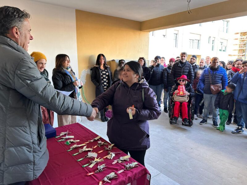 Inaugurato lunedì 23 dicembre, in piena atmosfera natalizia, il nuovo edificio di Edilizia Residenziale Pubblica del Comune di Pisa nella zona tra via Pietrasantina e via Arno, accompagnato dalla consegna delle chiavi agli assegnatari delle nuove case popolari. Sono 18 gli alloggi nuovi che l’Ufficio Casa del Comune di Pisa insieme ad Apes ha consegnato agli aventi diritto che risultano dalla graduatoria del Bando per l’assegnazione degli alloggi ERP e dalla graduatoria del Bando per la mobilità in alloggi ERP. Alla consegna delle chiavi degli appartamenti di via Arno, che è stato anche un momento per portare alle famiglie gli auguri di Natale, con consegna di pandori e panettoni da parte dell’amministrazione comunale, erano presenti il sindaco di Pisa, Michele Conti, l’assessore alle politiche sociali, Giovanna Bonanno e la direttrice di Apes, Romina Cipriani.