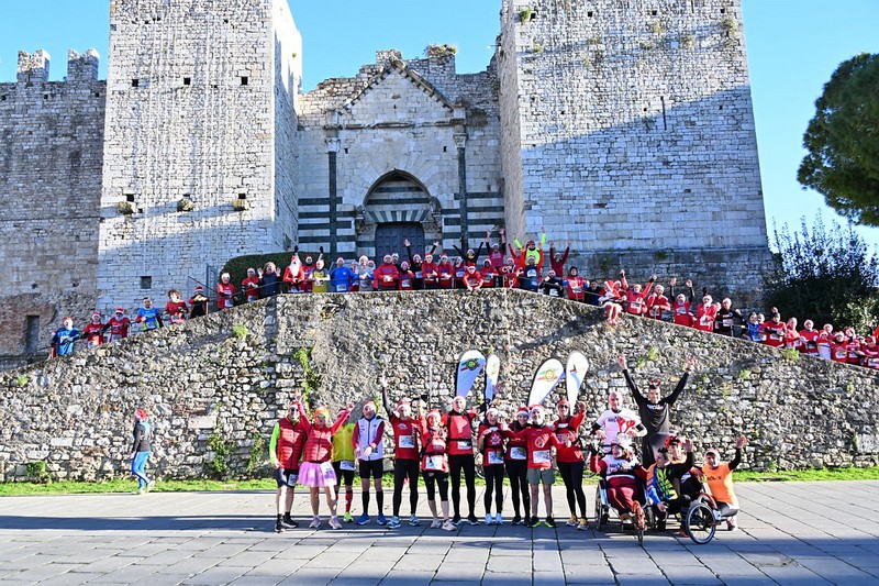 L’immancabile foto di gruppo sulla scalinata del Castello dell’Imperatore ha catturato un momento di pura magia, prima che gli atleti più giovani, tra cui i ragazzi di Atletica Calenzano, si lanciassero in una gioiosa corsa verso il traguardo. L’arrivo è stato un tripudio di sorrisi, brindisi e dolcezze natalizie, con panettone e altre prelibatezze a fare da cornice al momento conviviale.