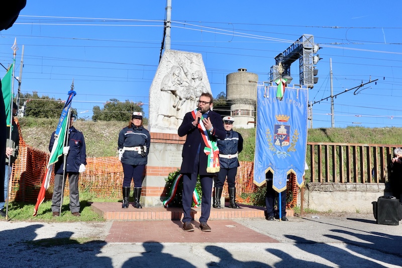 Sulle note del Silenzio intonato dal trombettista, a cui sono seguiti il Riposo, l’Inno di Mameli e l’Inno alla Gioia, è intervenuto il primo cittadino.