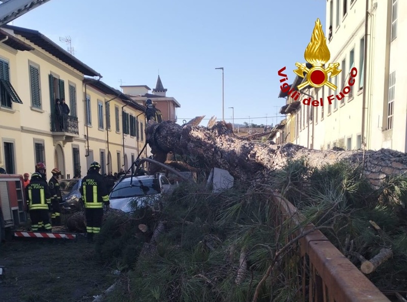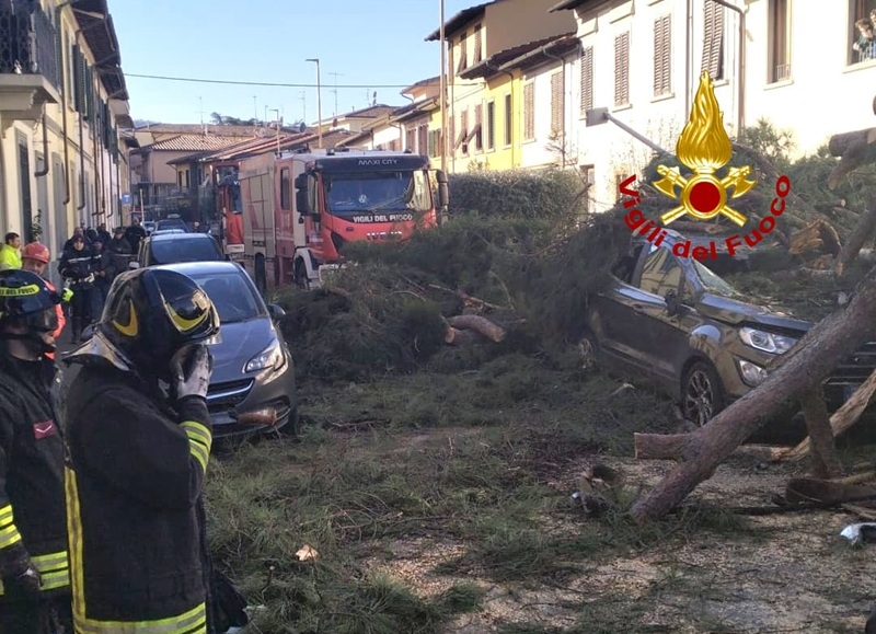Oggi, alle ore 10 i vigili del fuoco di Fi-Ovest e di San Casciano in Val di Pesa, sono intervenuti nel comune di Scandicci, in via Rolando Burchietti, a seguito della caduta di un grosso pino. L'albero è precipitato su tre auto parcheggiate e uno scooter, danneggiando anche due porzioni di tetti. Fortunatamente, non ci sono stati feriti. Per la rimozione del pino, sul posto sono intervenuti due squadre, un'autoscala e un'autogru.