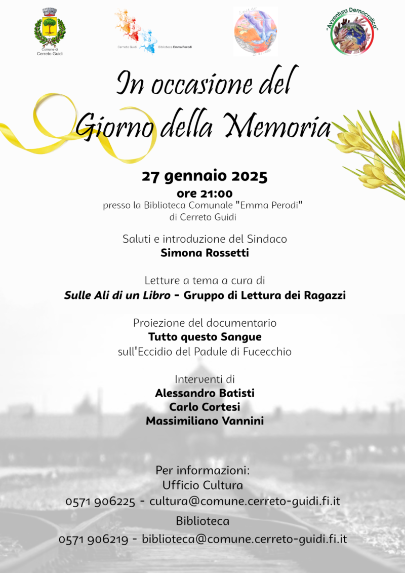 In occasione del Giorno della MemoriaLunedì 27 gennaio alle ore 21,00, nei locali della Biblioteca “Emma Perodi” di Cerreto Guidi, si terranno alcune iniziative.