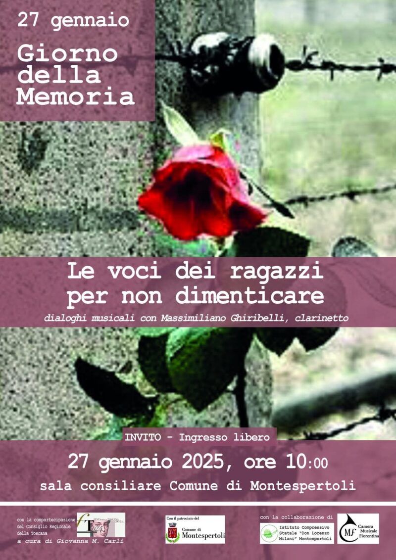 Lunedì 27 gennaio prossimo, alle ore 10, in un evento gratuito e aperto al pubblico, nella sala consiliare del Comune di Montespertoli saranno ventiquattro giovanissimi a testimoniare che il 27 gennaio è una data importante per ricordare quello che non moltissimi anni fa è stato perpetrato ai danni di milioni di persone.