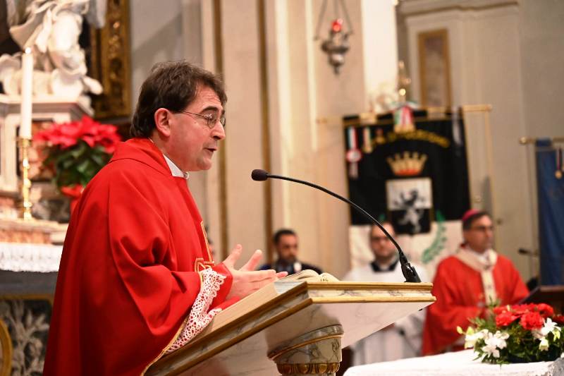 All’interno della Chiesa si è quindi tenuta la Santa Messa, presieduta da Sua Eccellenza Gherardo Gambelli, concelebrata dal Parroco Don Alessandro Lombardi (da poco nominato dal Presule fiorentino Pro Vicario dell’Arcidiocesi di Firenze) da Don Valentino Cheli, Parroco di Santa Maria della Marca e dal Diacono Alessandro Pippi (consacrato lo scorso ottobre, è attualmente Comandante della Polizia Municipale di Montecatini Terme). La celebrazione è stata animata dalla Corale della Polizia Municipale dell’Unione, diretta dal Maestro Tommaso Pini, con la partecipazione degli alunni della Scuola di Musica di Castelfiorentino appartenenti alla Corale di Santa Verdiana (diretta dal maestro Gabriele Centorbi). Al termine della Messa è stata proclamata la preghiera di San Sebastiano dall’Ispettore Maria Grazia Lotti.