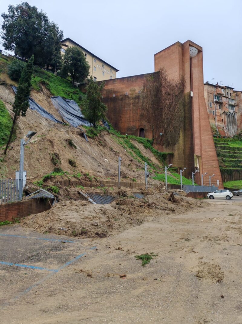 Il fango è il materiale franato è stato rimosso grazie ai mezzi di Bottai group che è stata attivata per questo. Il parcheggio è stato subito chiuso al transito di auto e pedoni e ora si lavora per capire le ragioni dello smottamento e la messa in sicurezza e riaprire quanto prima il parcheggio, in attesa dei lavori di ripristino del fronte franato.
