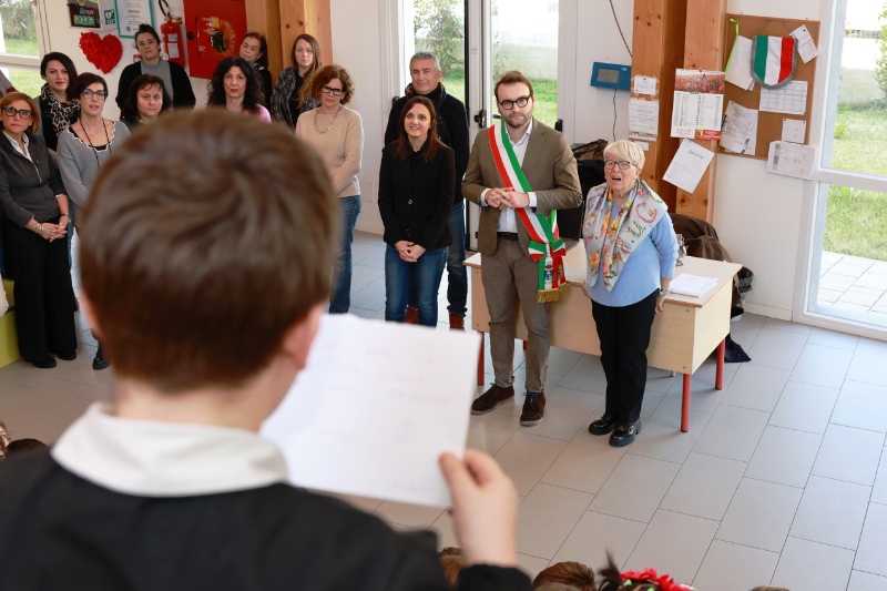 "Questa scuola molto bella - ha raccontato il sindaco Alessio Mantellassi alla platea - è stata resa ancora più bella con questi mosaici fatti qui vicino. Dal Centro Diurno, che ringrazio, ne vengono fatti tanti nel corso degli anni e anche a me ne è stato regalato uno raffigurante una piccola Gioconda, è esposto nel mio ufficio. Un mosaico parla della scuola con un messaggio di festa e di allegria, come dovremmo tutti vivere questi preziosi anni. L'altro parla del poeta a cui è intitolata questa scuola e gli rende omaggio. Ma questa scuola non sarebbe molto senza la parte della didattica fatta dalle insegnanti e senza la parte di voi bambine e bambine che siete chiamati ad animare e a voler bene a questi spazi".