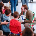 Dopo i saluti iniziali nella scalinata-auditorium della scuola, le bambine e i bambini sono intervenuti prima ringraziando del regalo, poi recitando alcune citazioni famose dedicate alla scuola, alla conoscenza e alla libertà. Infine hanno intonato la canzone Supereroi di Mr. Rain: un momento di vera emozione.
